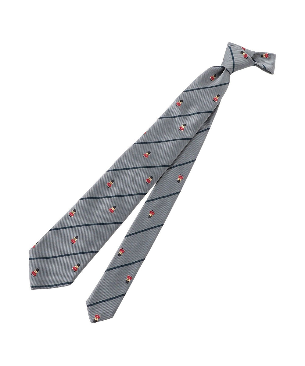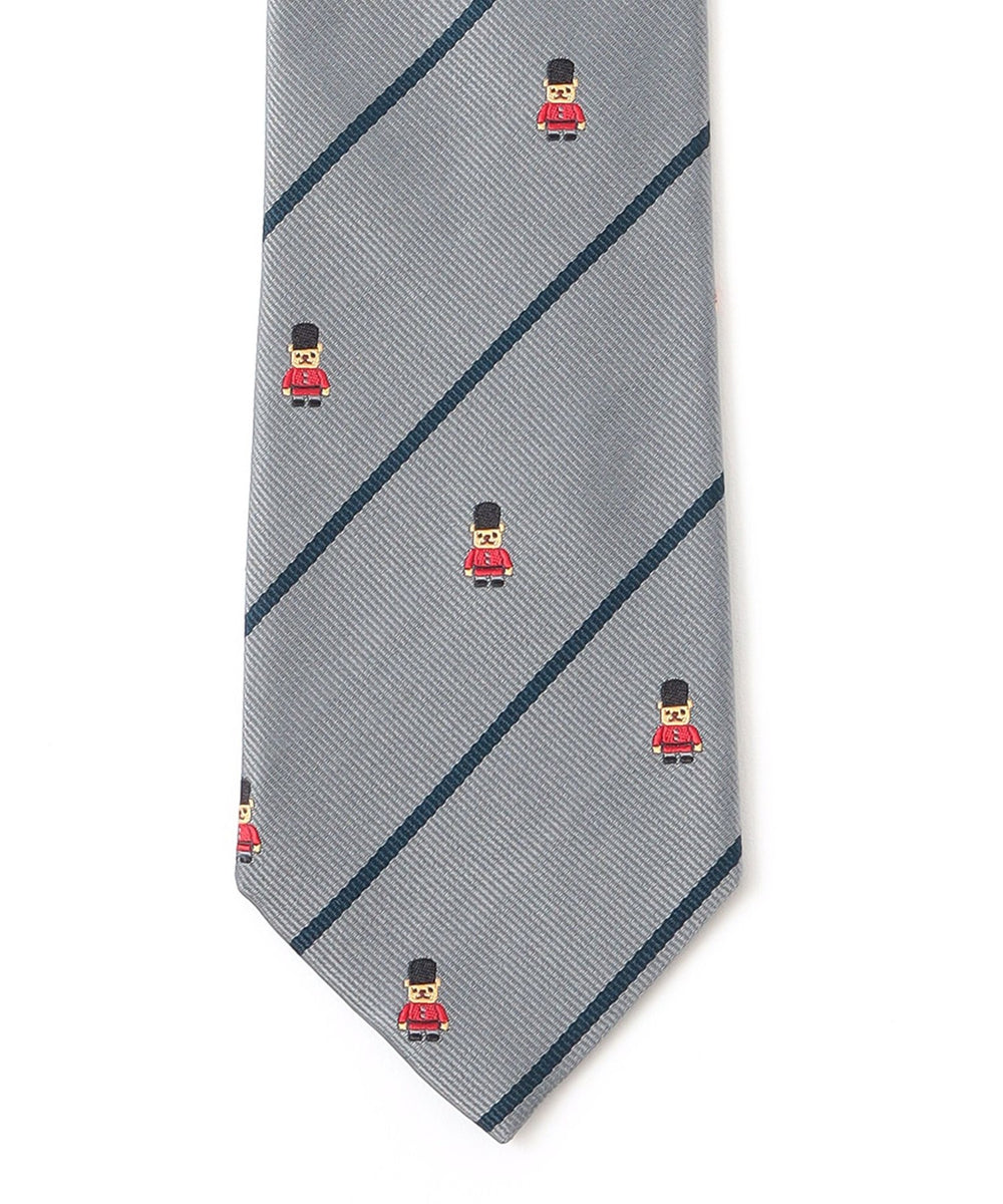 ブリティッシュなレジメンタルストライプ柄にバッキンガムベアモチーフをあしらったネクタイ