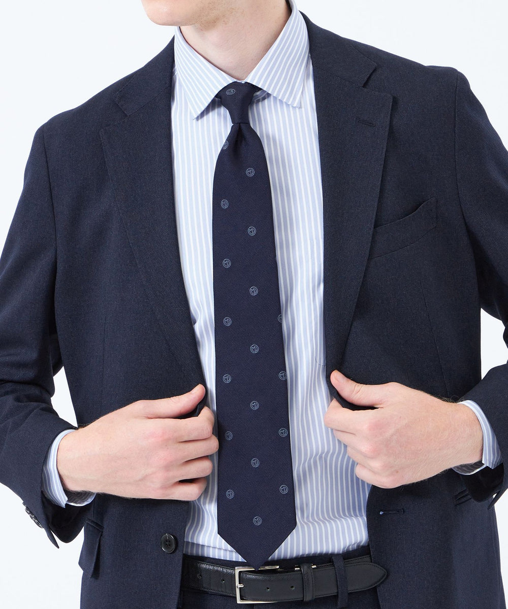 ブランドオリジナル「MPロゴ」モチーフを小紋柄で表現したネクタイです。上品な光沢感のあるレップ組織をベースに、シャドー調の落ち着いた色合いでロゴを表現しているので、シーズン・スタイルを問わない汎用性の高さも特徴。時間をかけながらシルクの糸量を通常より多く使用して高密度に打ち込むため、柄組織の切り替わるエッジがクリアに織り出されるだけでなく、シルキーでスムースなタッチも魅力の1本です。