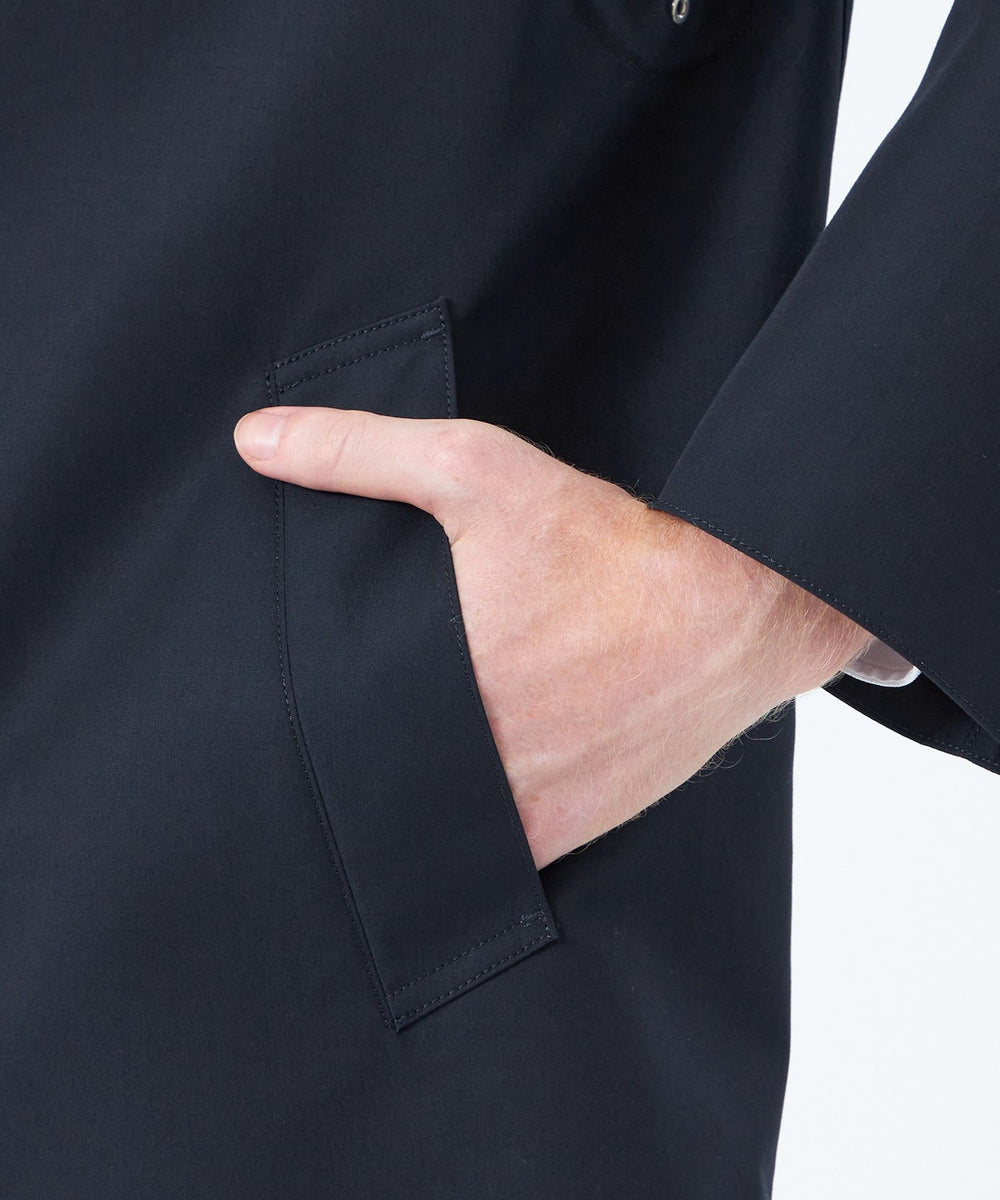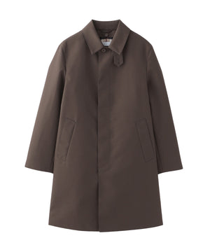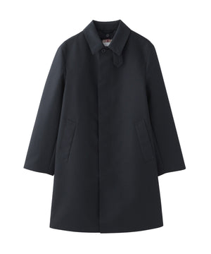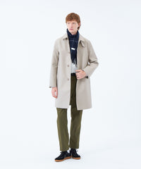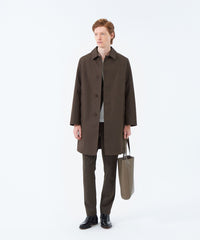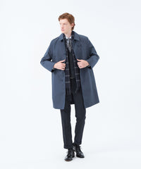 ステンカラーロングコート。ハウスチェックライナー付き。控えめなAラインで英国らしさを追求したシャープなシルエットながら着心地の良さも追求したパターンが特徴です。第一ボタンを開けてもきれいに開く設定で襟タブ付きのデザイン。ロゴ釦も生地色に合わせて染ボタンを使用。脇下にはべンチレーション付き。ハトメはフラットハトメでモダンな印象です。ウールライナーはマッキントッシュブランドのアイコンであるハウスチェックを接ぎ(縫い合わせ)の無い1枚取りで贅沢に使用しています。