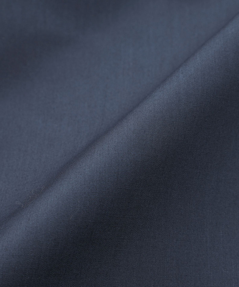表裏同色のポリエステル綿ブロードの3層ボンディング。表側と裏側生地の間に透湿防水性、防風性の機能を持つフィルムを挟み込み貼り合せた3層構造です。