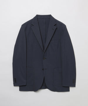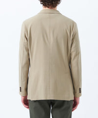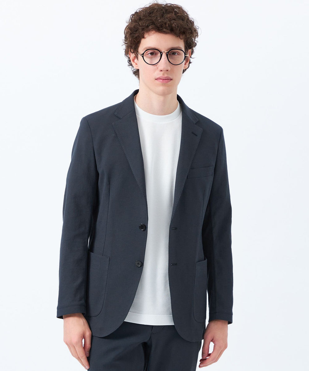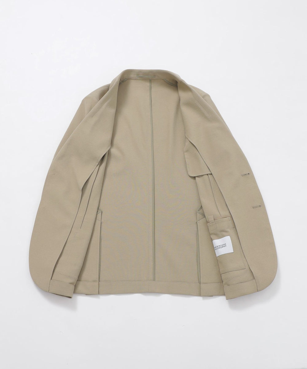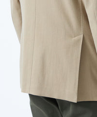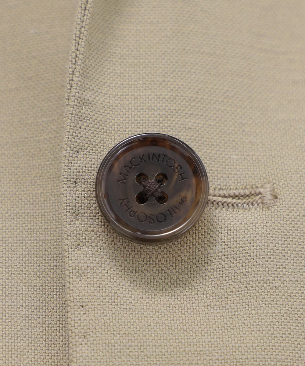 シングル2つボタンの腰パッチポケットデザイン。袖口3つボタン。内仕様は腰部分に片側ポケット付の大見返し仕様。背裏・袖裏のない軽やかなデザインです。