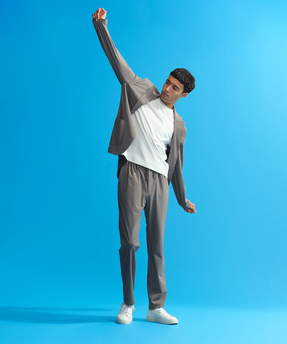 程良い反発感がある2Wayストレッチのトリコット素材を使用。吸水速乾性、防シワ性、接触冷感性などの機能性があり、暑い時期から快適に着用できます。