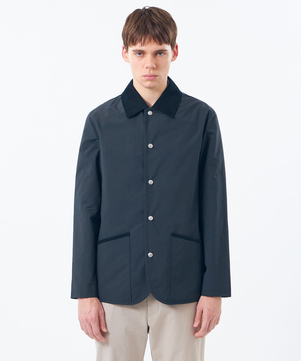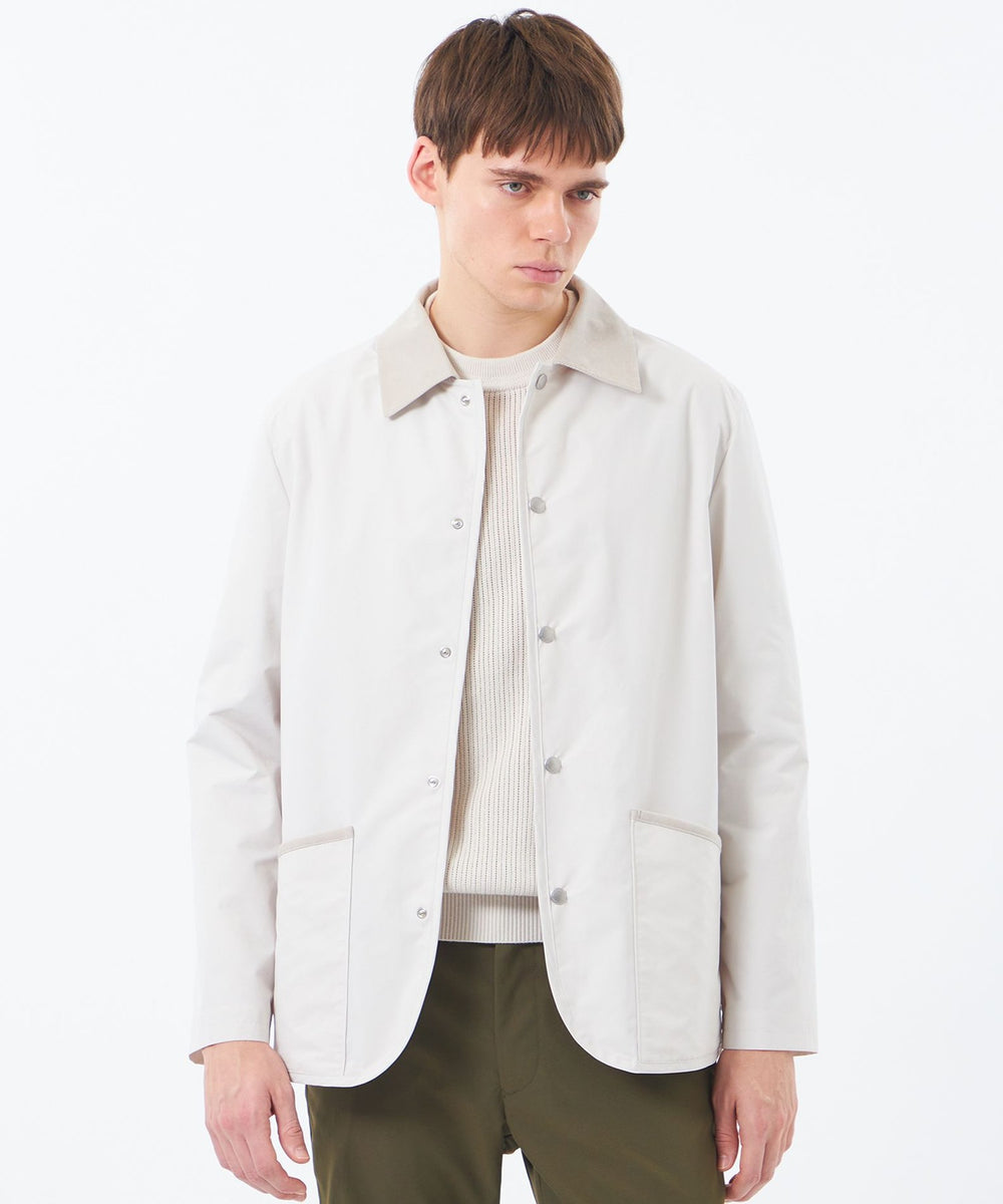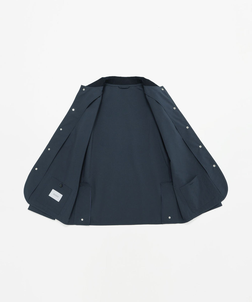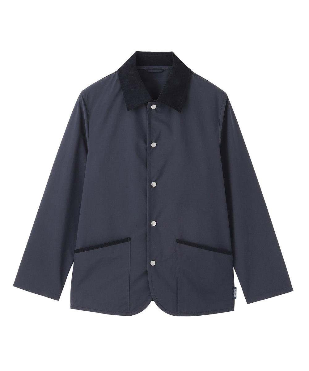 英国伝統のライディングアウターを現代的にアップデートした定番アウター、WARENFORD(ウァレンフォード)をベースにフロントにドットボタンを配しました。ワイドシルエットのパンツとの相性も抜群で、襟やポケット口、サイドベンツにはコーデュロイをあしらい、英国らしいクラシックなディテールが魅力です。