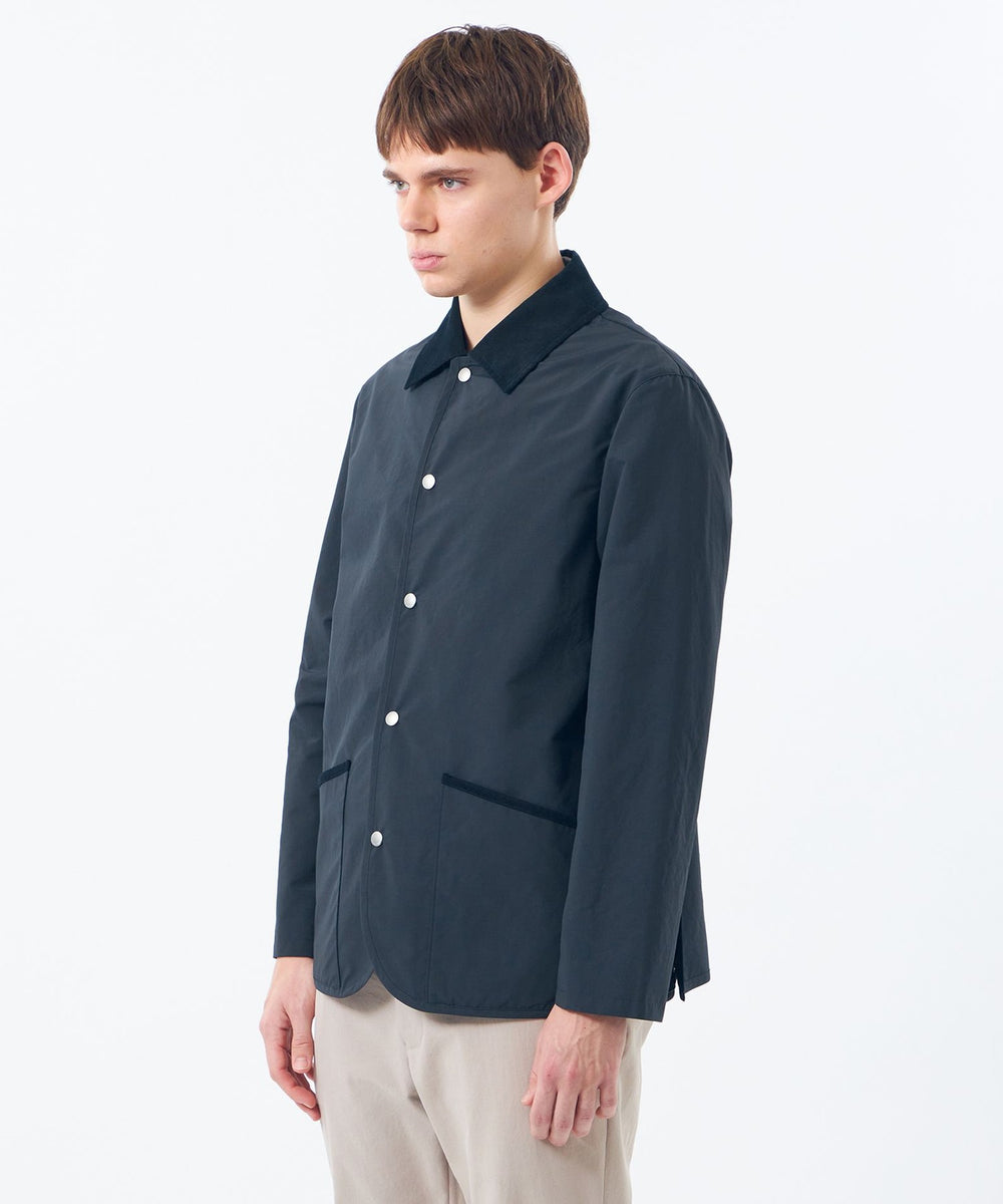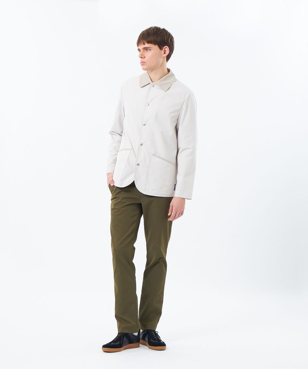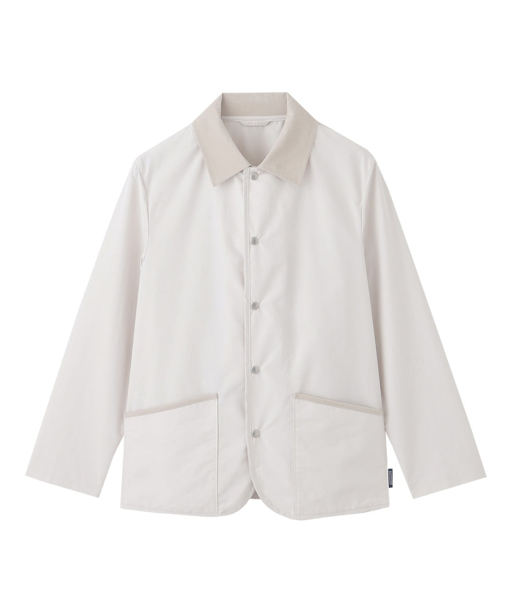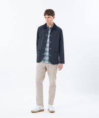 英国伝統のライディングアウターを現代的にアップデートした定番アウター、WARENFORD(ウァレンフォード)をベースにフロントにドットボタンを配しました。ワイドシルエットのパンツとの相性も抜群で、襟やポケット口、サイドベンツにはコーデュロイをあしらい、英国らしいクラシックなディテールが魅力です。