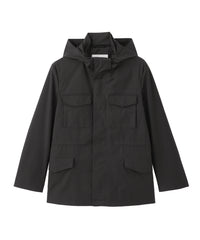 都会的な印象で、フード着脱可能なミリタリーパーカ