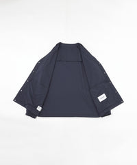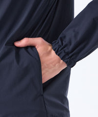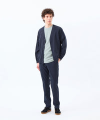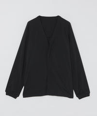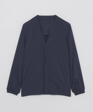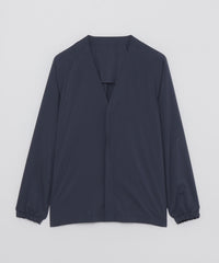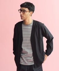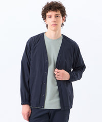 ラグラン袖の軽量カーディガンです。フロントは見た目もすっきりとした隠しドット釦仕様。袖口はゴムシャーリングで腰ポケット付き。また背裏部分に折りたたんで手のひらサイズに収納できる、パッカブル仕様が魅力のデザインです。