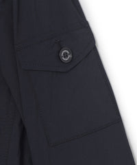 UKフィールドジャケットをベースにしたショートブルゾン、STANSTED(スタンステッド)。ジャケットの上から着用可能な着丈で、ウエスト部分のドローコードでシルエットの調整ができます。また、アウトポケットだけではなく、本体上前側に内ポケットが付いているのも嬉しいポイント。