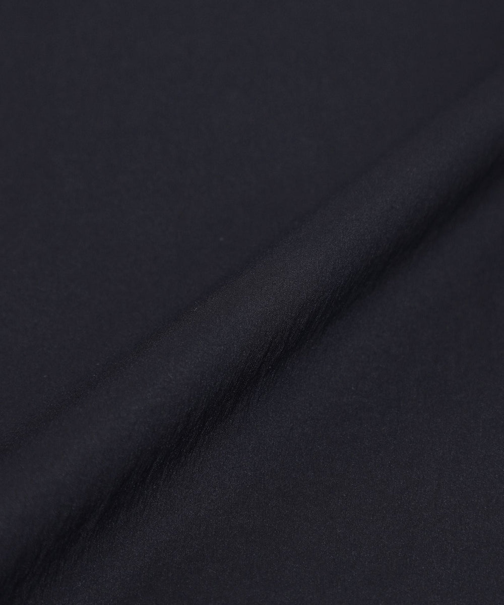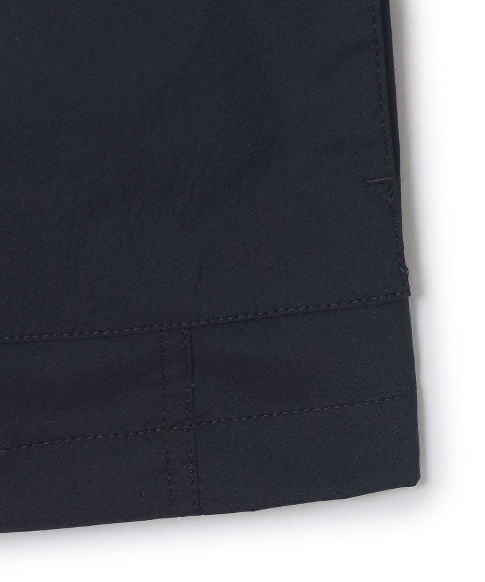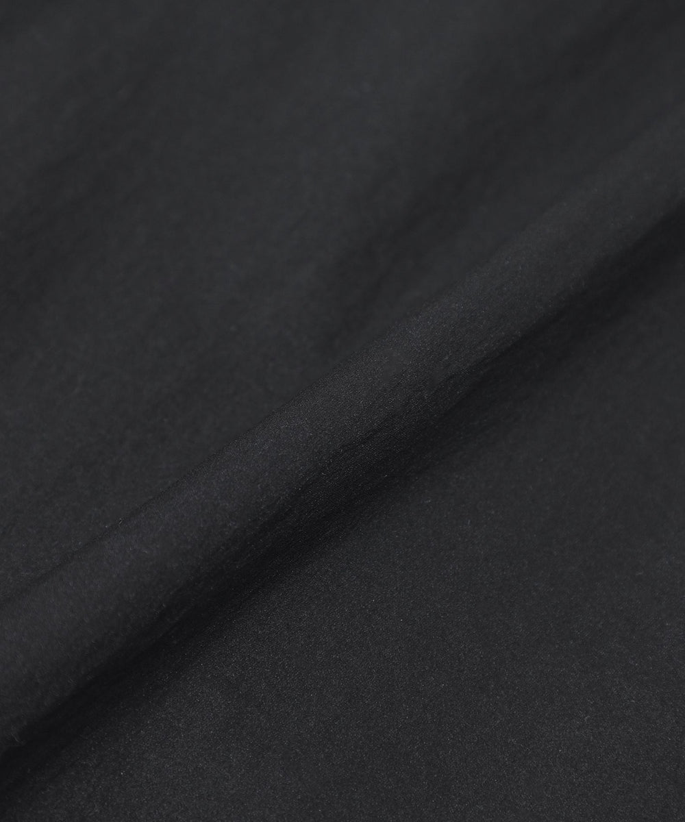 細番手のナイロンを使用したストレッチワッシャータフタ素材。ドライタッチで肌離れが良く、ハリ感と軽量感が特徴。防しわ性のあるナチュラルなワッシャー素材は持ち運びに便利です。