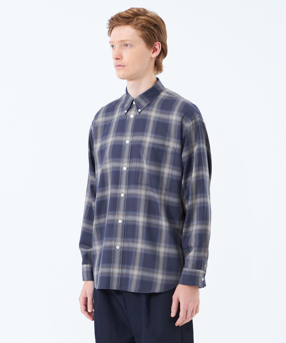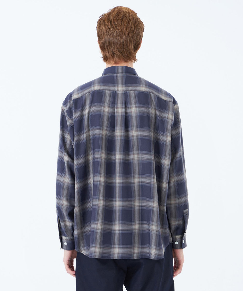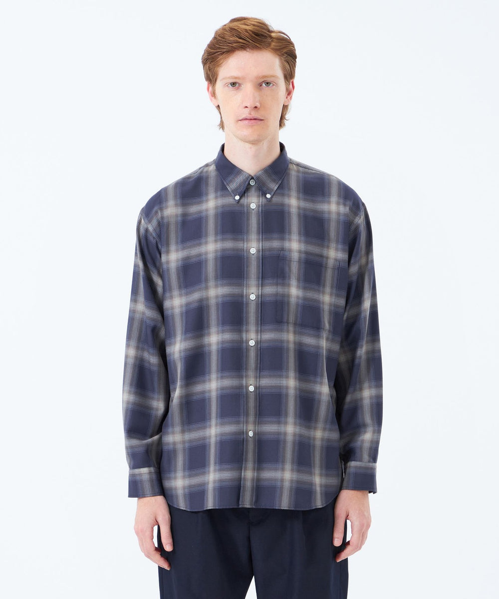 羽織りとしても活躍するチェック柄のオーバーサイズボタンダウンシャツ