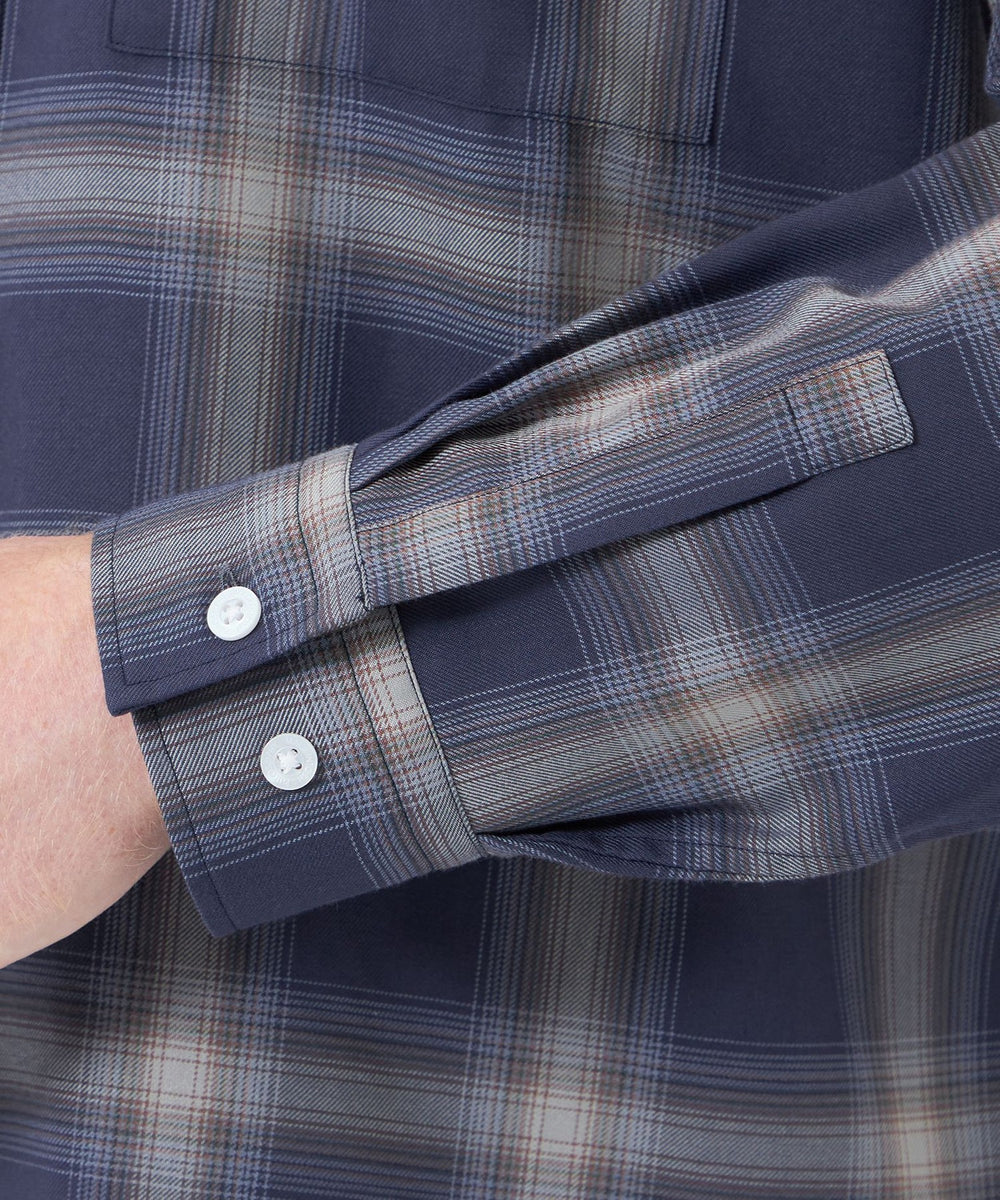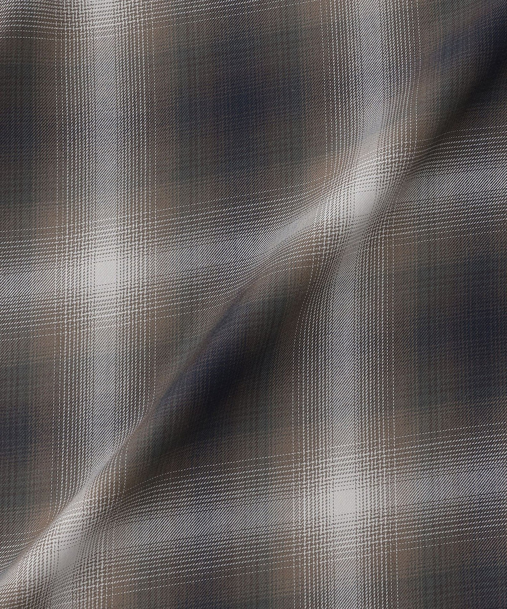リサイクルポリエステルとレーヨンをミックスした糸を使用した、しなやかな風合いのオンブレチェック。チェック柄の色の濃淡が徐々に変化し、グラデーション表現が特徴のトレンド感のあるチェック柄です。
