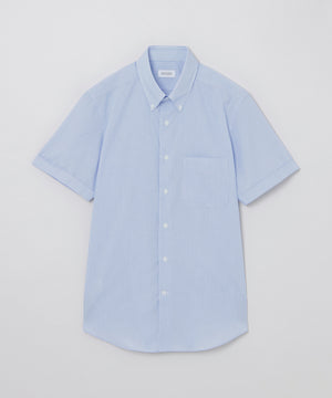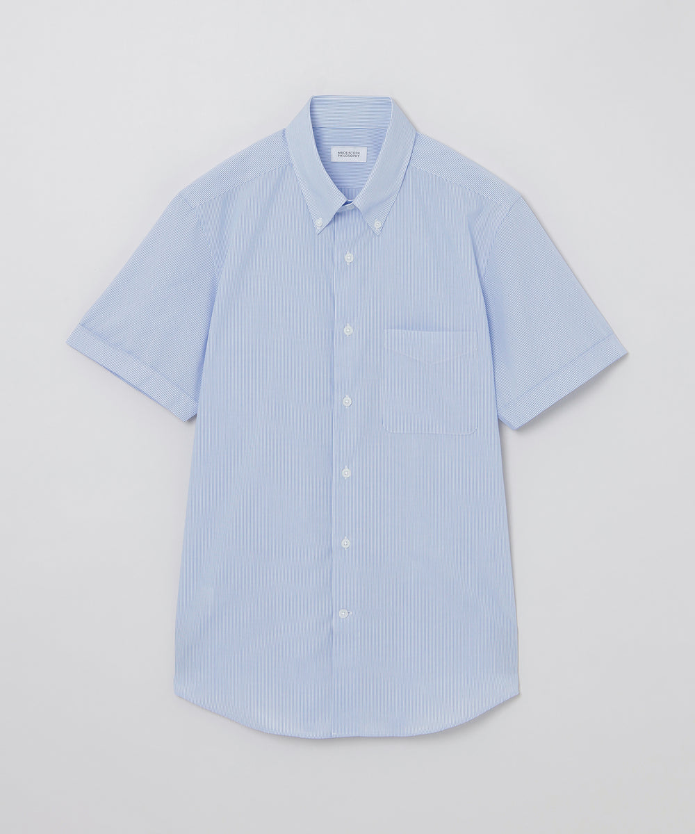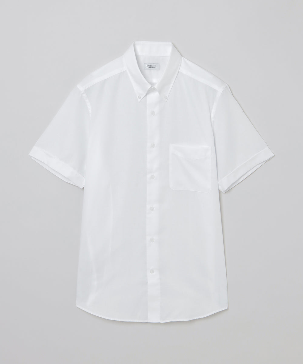 トラッドな印象と襟のロール感に上品さのある定番のボタンダウン半袖シャツ。襟先の自然なロール感をきれいに出し、着用時、立体感があり首回りをすっきりみせてくれます。後身にダーツがあり、ウェストを程よくシェイプさせ、体のラインをきれいにみせてくれるシルエットも特長。スラックスや綿パンツなど様々なパンツスタイルで着用いただけます。