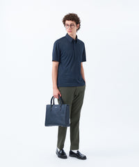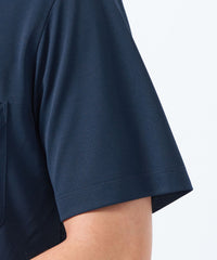 クールビズにピッタリの台衿付きドレスポロ。衿先の自然なロール感をきれいに出し、着用時の立体感が首回りをすっきり見せてくれます。スクエアカットの裾デザインで、スラックスから綿パンツ合わせなどパンツアウトスタイルでも上品な雰囲気で着用いただけます。後襟ぐり、脇下部分には消臭機能のあるテープを縫い込んでおり、気になる臭いを抑えてくれます。また、イージーケア性にも優れており、洗濯後もシワになりにくい素材を使用しています。