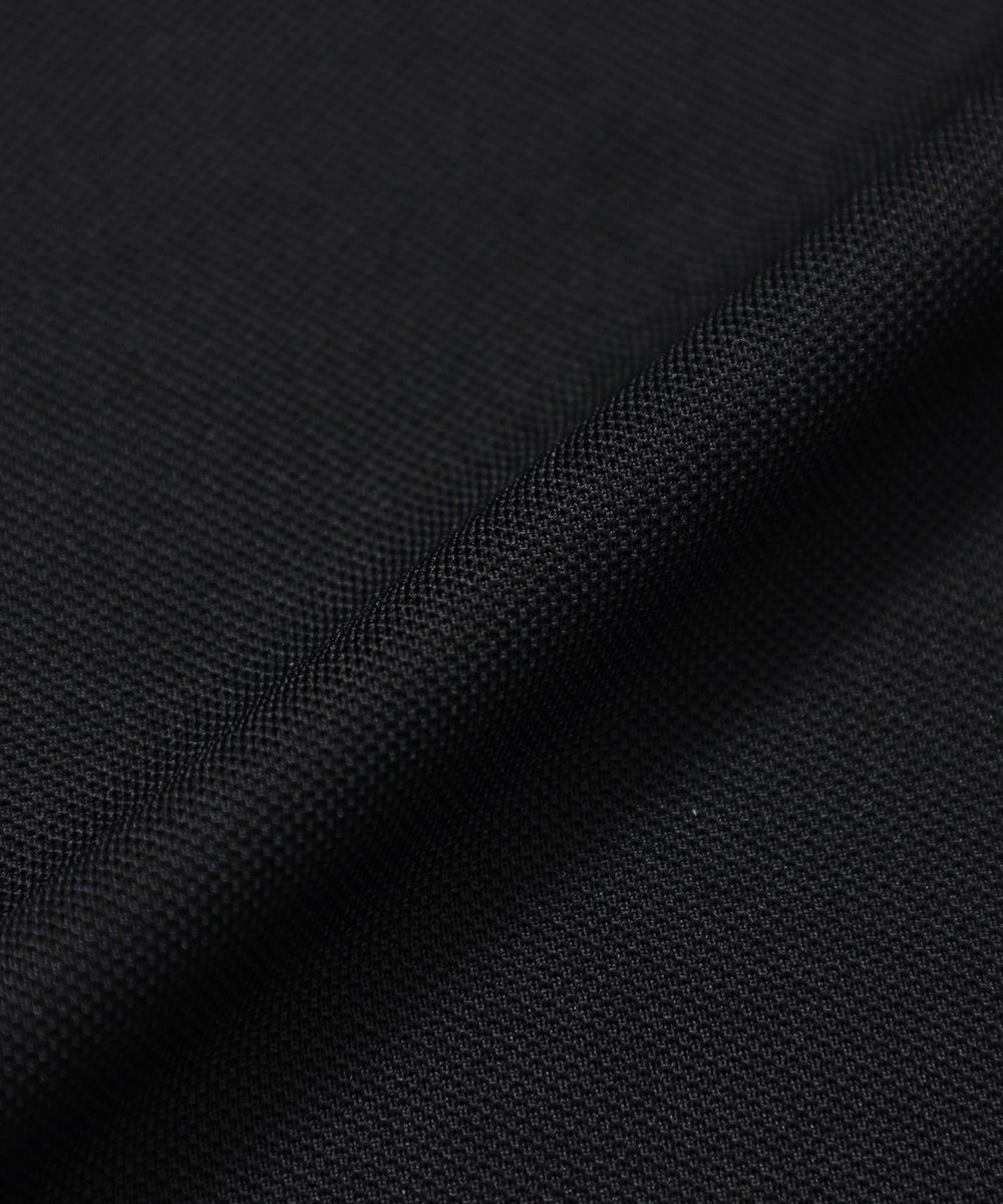 立体的な組織感が特長のポリエステルカノコジャージー素材。ストレッチ性がありつつ、適度なハリ感もあり、布帛シャツのようなきれいな目面が特長です。