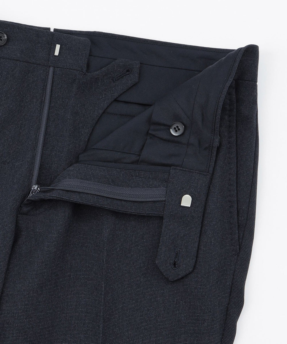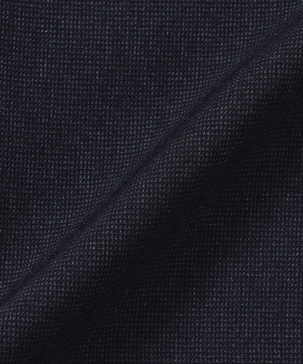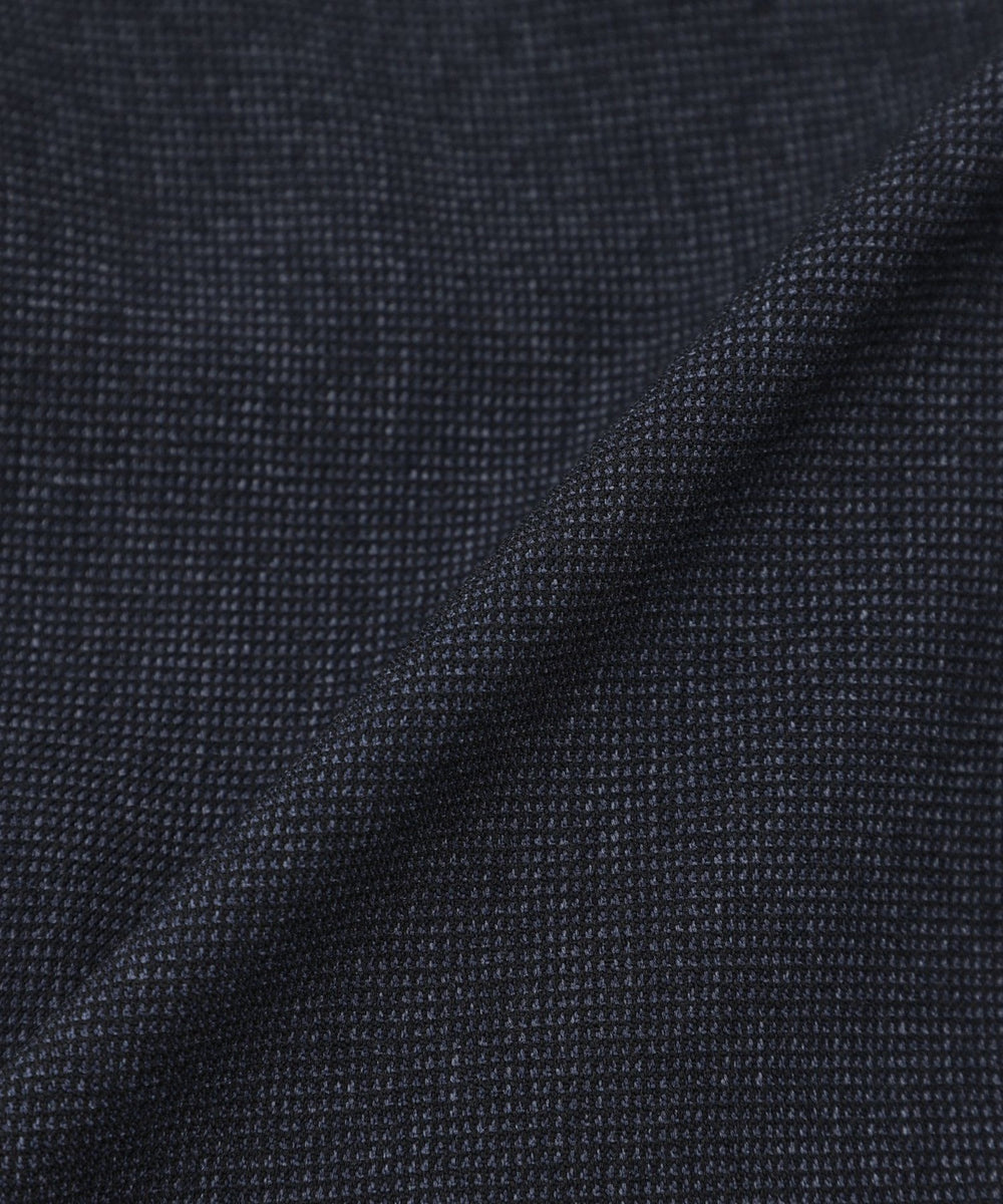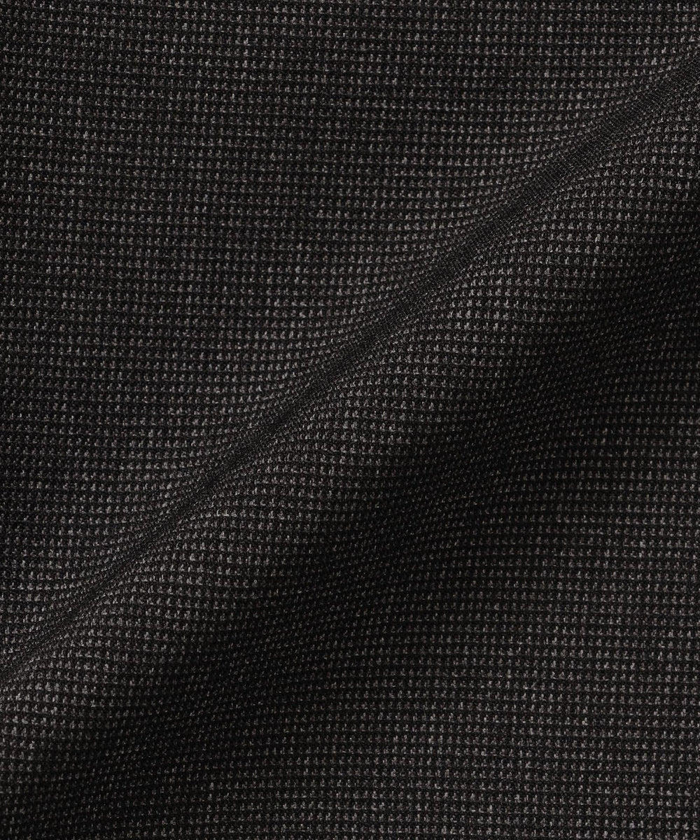ポリエステルウーリー糸によるウール調のルックスが特徴のピンヘッド素材。カチオンミックス糸を使用し、メランジ感を表現。程良い肉感でナチュラルストレッチと膨らみのある風合いが快適な着心地を提供します。