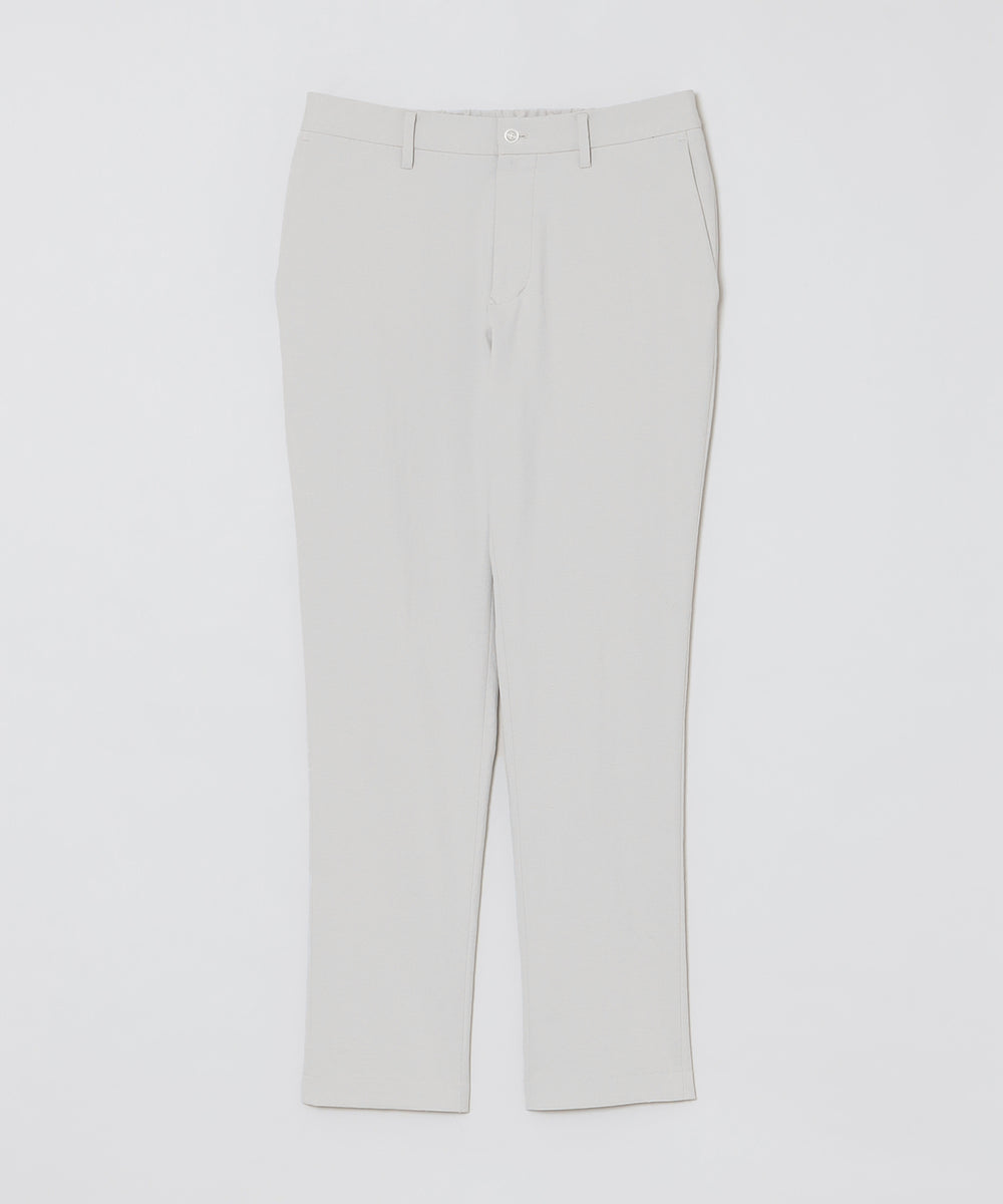 ウェスト後ろゴム仕様のエラスティックパンツ。ベルトなしでも穿けるリラックスした着心地ながら前身はすっきりとした見た目のON/OFF兼用で使えるパンツです。