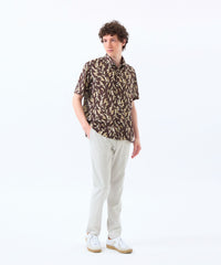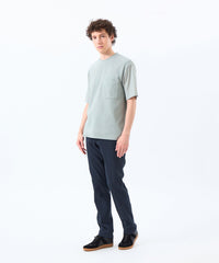 綿と麻のナチュラルな表情とドライなタッチ感が魅力のストレッチ素材。また、肌離れも良く、吸水速乾性、接触冷感性も備えた夏にうれしい機能素材です。