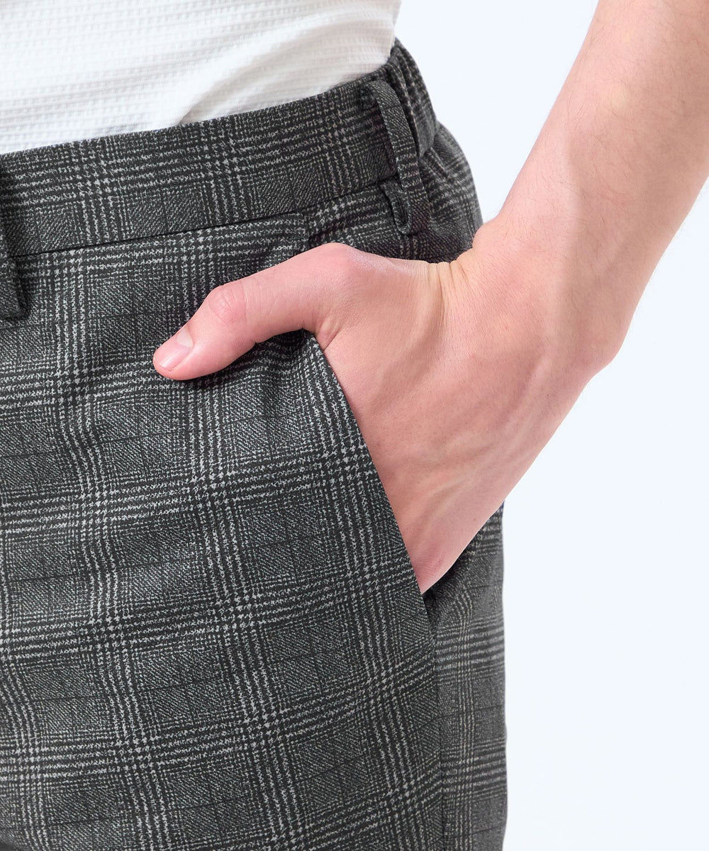 テーラードジャージーパンツ ツイル/チェックプリントメッシュ