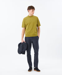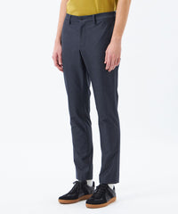 ウェスト後ろゴム仕様のエラスティックパンツ。ベルトなしでも穿けるリラックスした着心地ながら前身はすっきりとした見た目のビジカジ兼用で使えます。裾にかけてテーパードを利かせてきれいなラインが出る設計にしています。