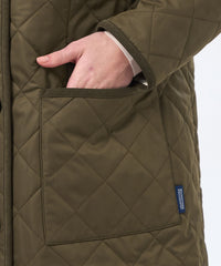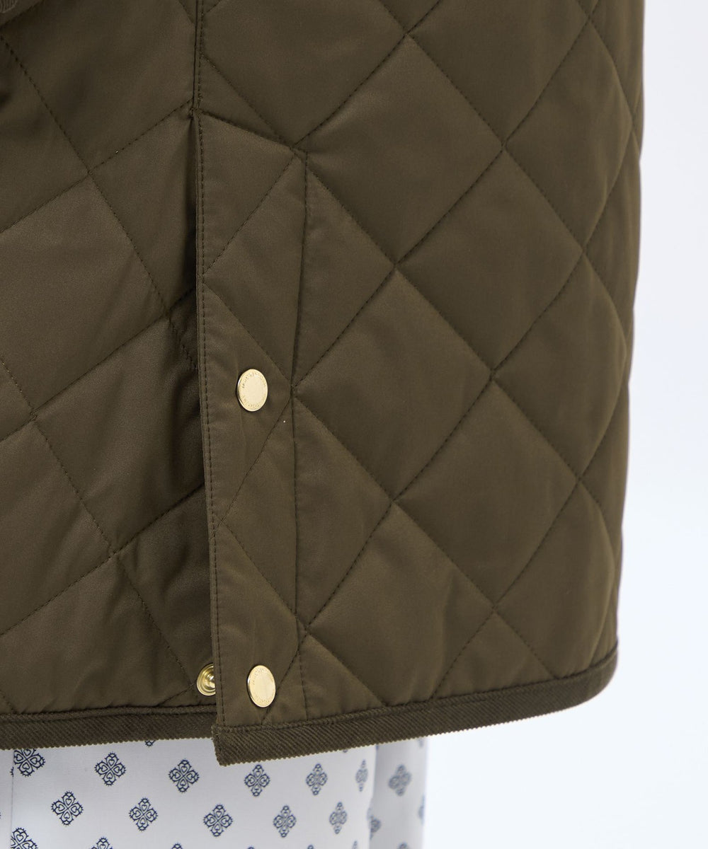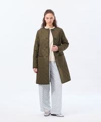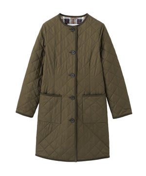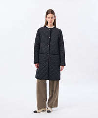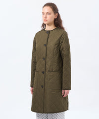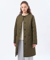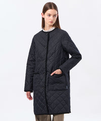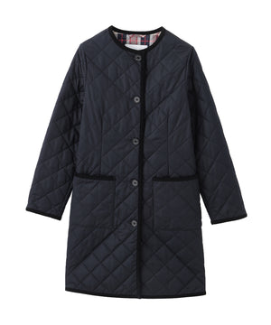 ノーカラーのキルティングコートROYTON LONG<ロイトンロング>は、スタイルをよく見せるコンパクトで飽きのこないデザインです。