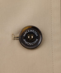先染めで織ったはっ水加工のレインウェザークロスは、マッキントッシュフィロソフィーのオリジナル素材です。独特なハリ感ときれいな表情、上品な光沢感が特徴で、ポリエステルと綿の持つ天然タッチのクオリティは価値ある仕上がりです。