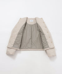 軽く膨らみがあり、保温性の高い中わた『Heavenly LightCloud』を使用することによって、ふくらみ感はありながらもカーディガンのように軽く羽織れるアイテムに仕上げました。