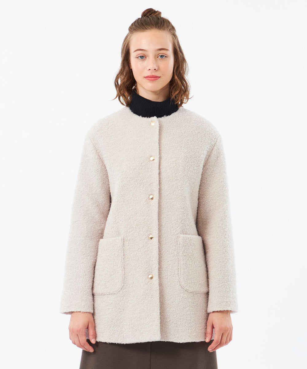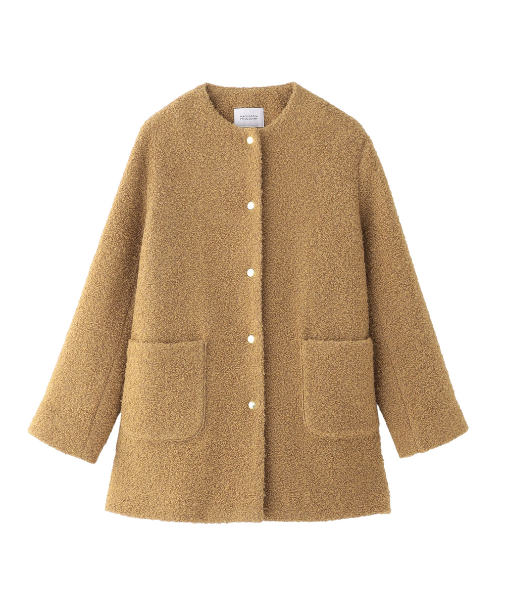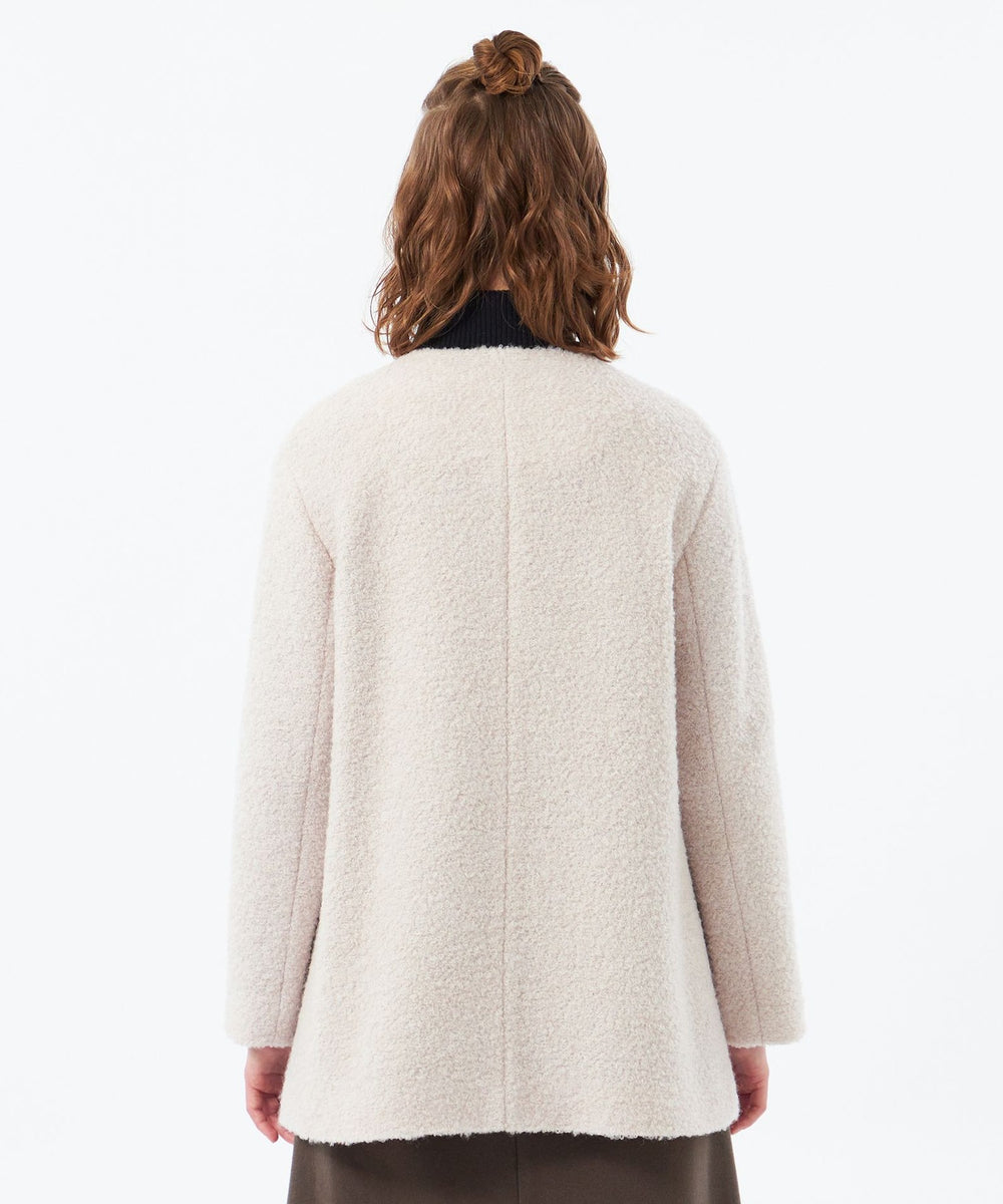 Iラインのミニマルなシルエットで、カーリーな愛らしい表面感のブークレー素材を最大限楽しめる一着です。