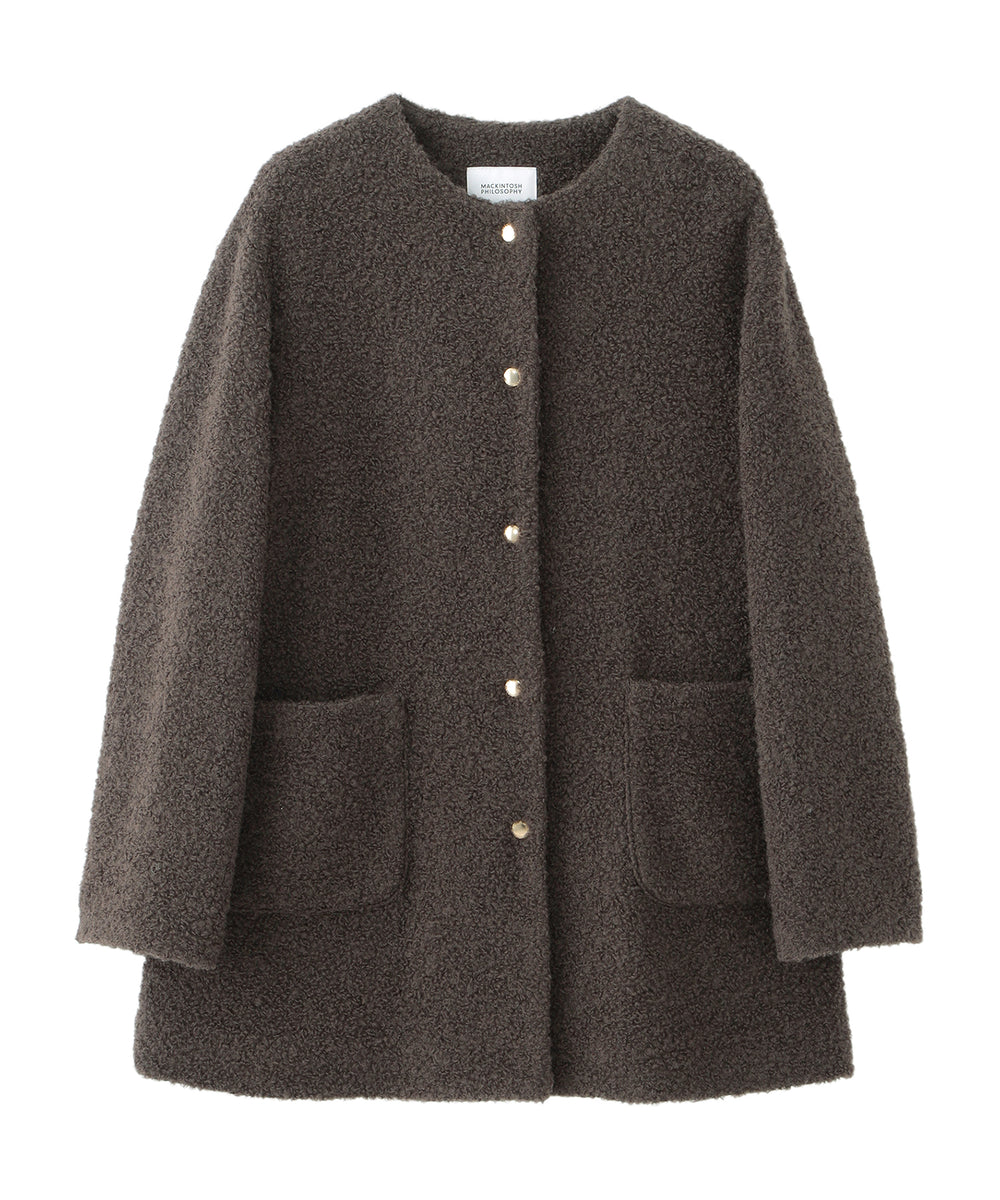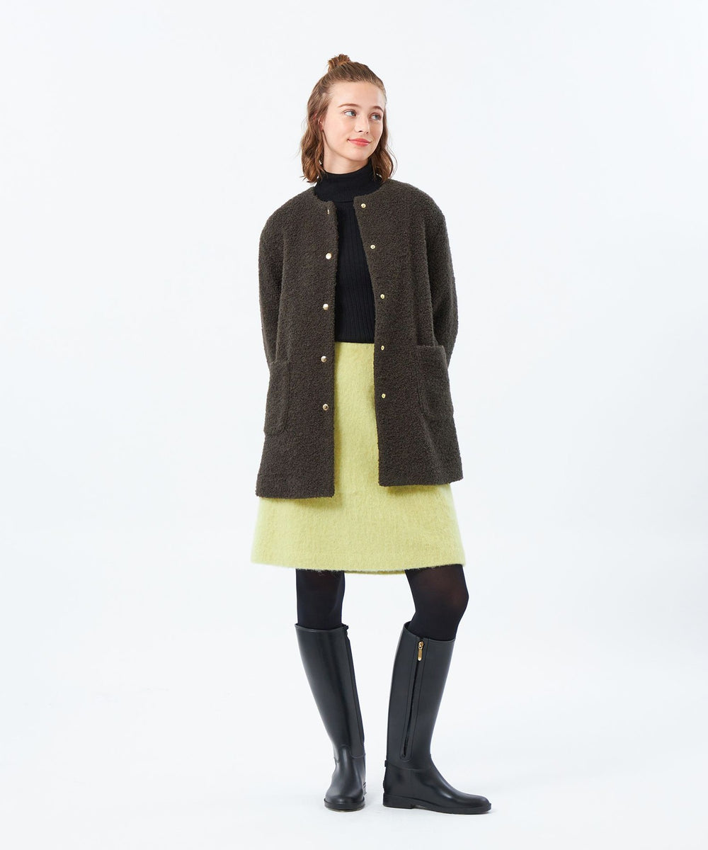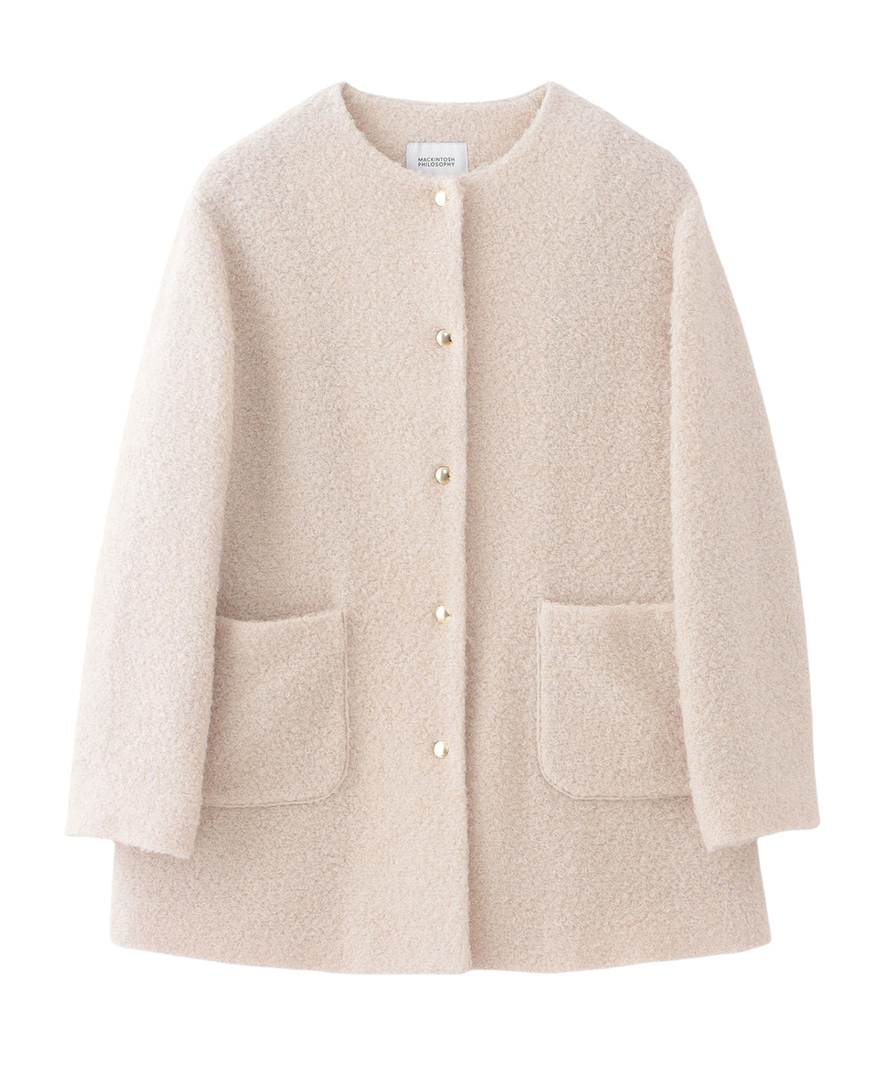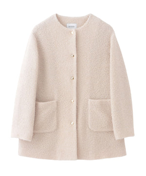 Iラインのミニマルなシルエットで、カーリーな愛らしい表面感のブークレー素材を最大限楽しめる一着です。