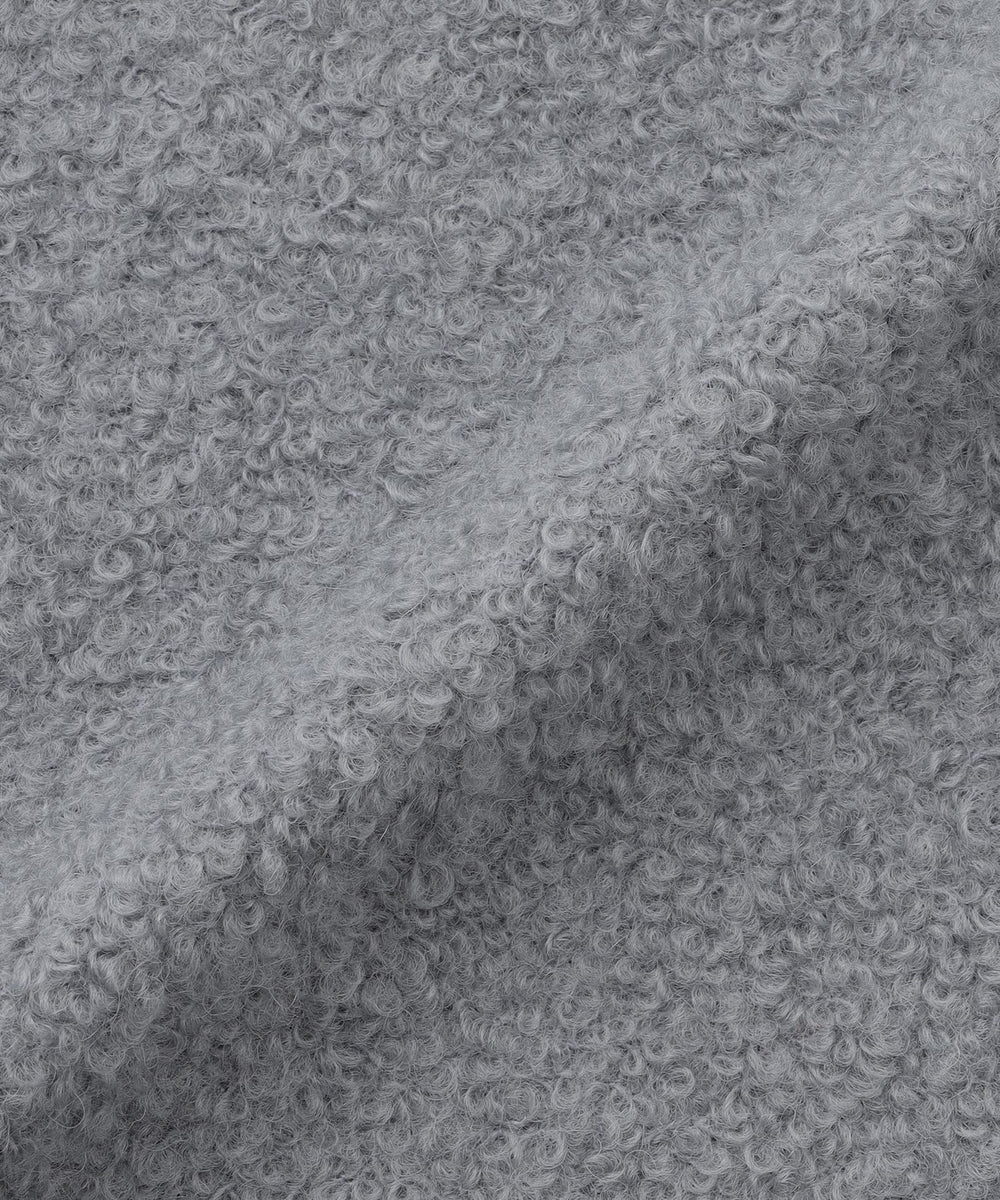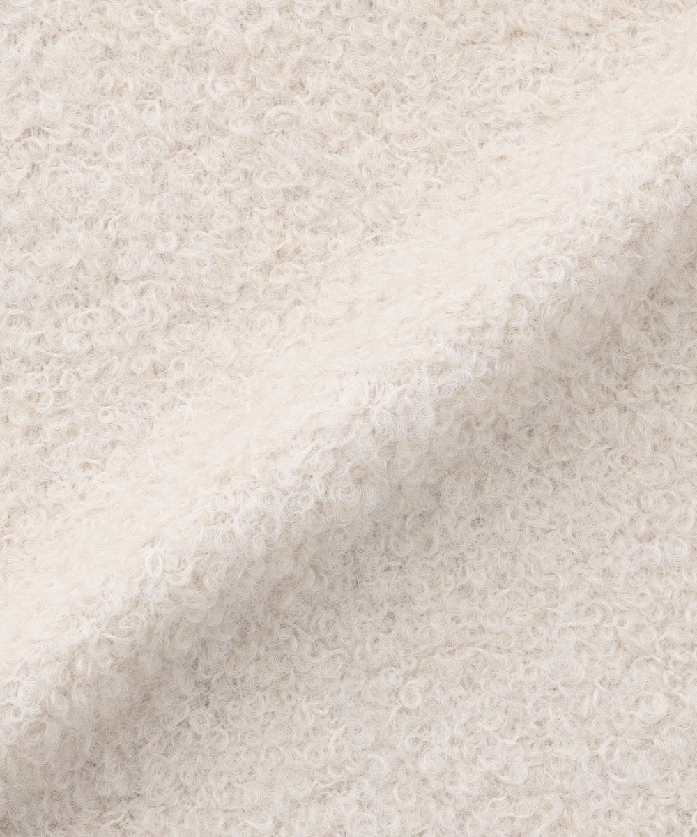 ローゲージで編んだ、軽さと暖かさが特徴のブークレ素材。生地に膨らみの出る編み方で立体的な表面を実現し、表情のあるファブリックに仕上げました。