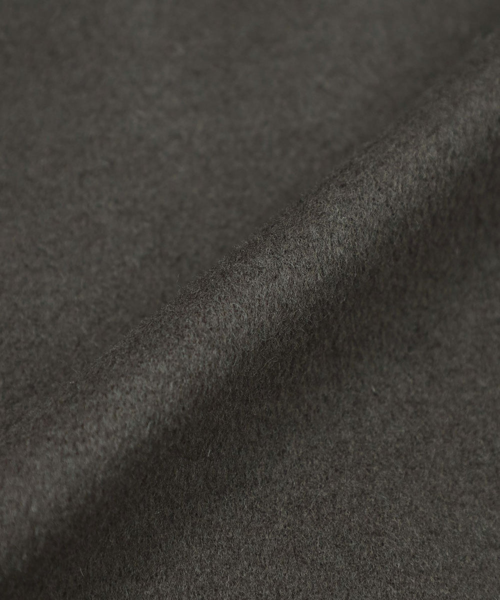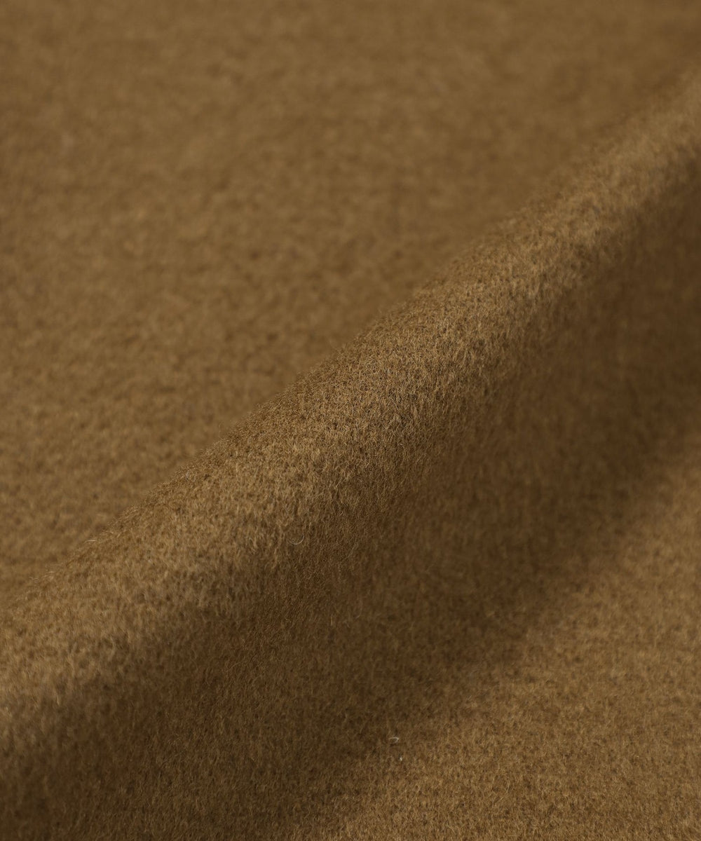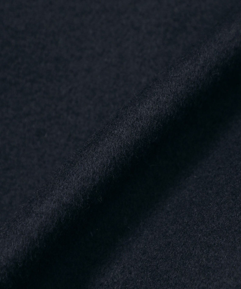 素材は10番手のウール糸を二重組織で織り上げたダブルクロスメルトン。ハリ感と厚みのある生地にショートビーバー仕上げでしなやかさと光沢を加えた高級感のあるファブリックです。