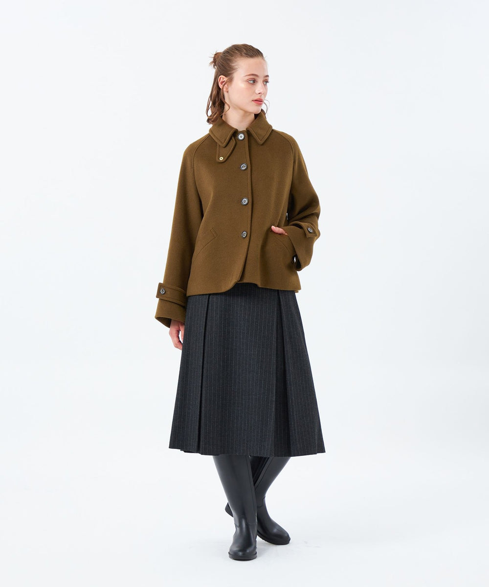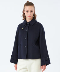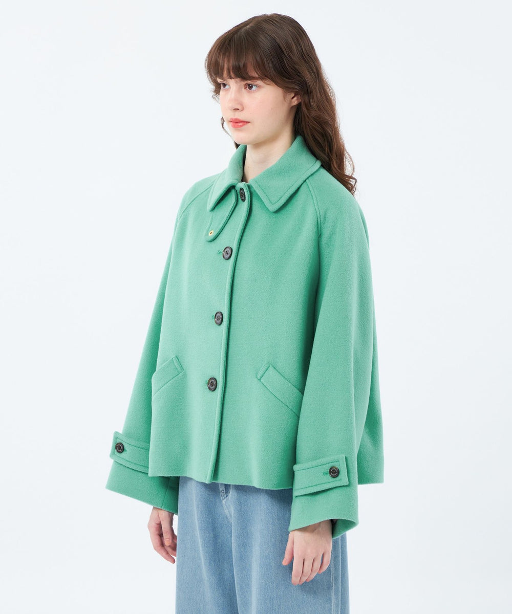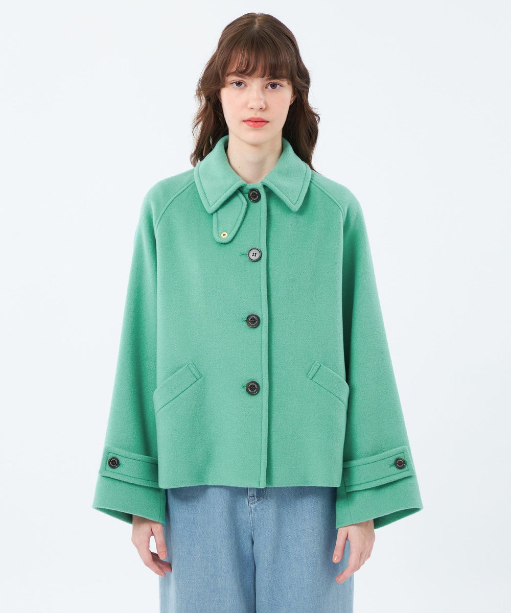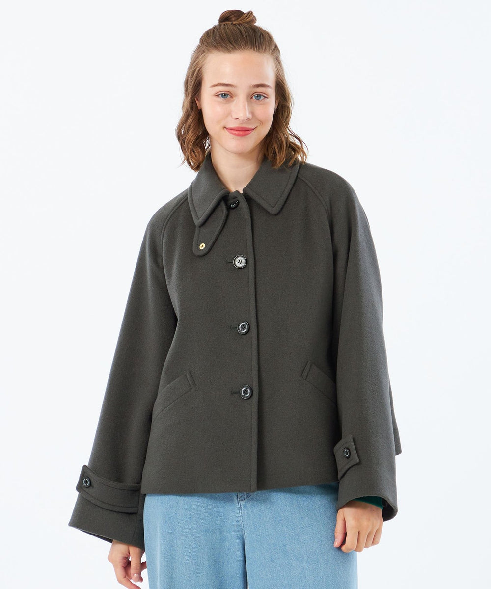 ケープのような柔らかいフォルムとゆとりのある袖がアイコニックなコートです。軽快な印象のショートレングスが2025年より仲間入り。