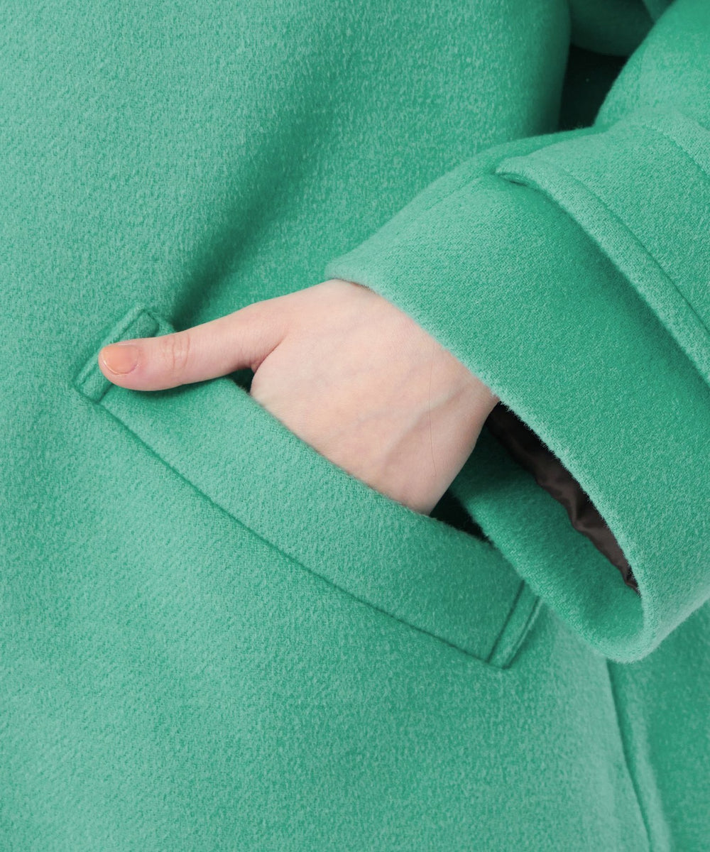 素材は10番手のウール糸を二重組織で織り上げたダブルクロスメルトン。ハリ感と厚みのある生地にショートビーバー仕上げでしなやかさと光沢を加えた高級感のあるファブリックです。