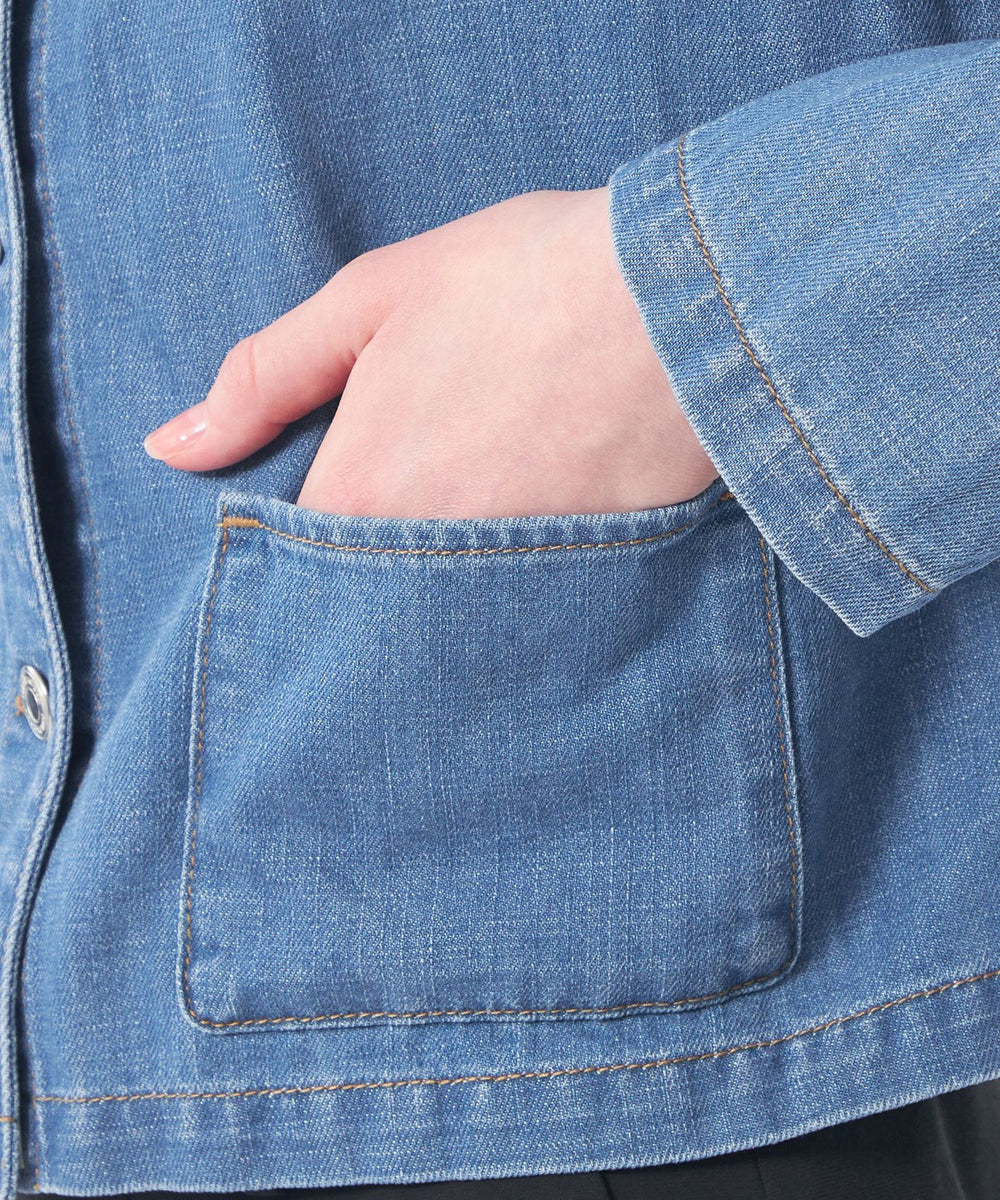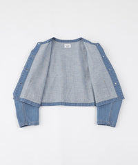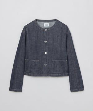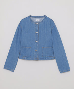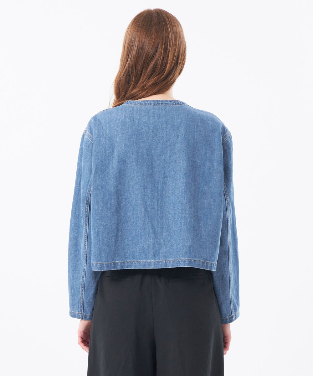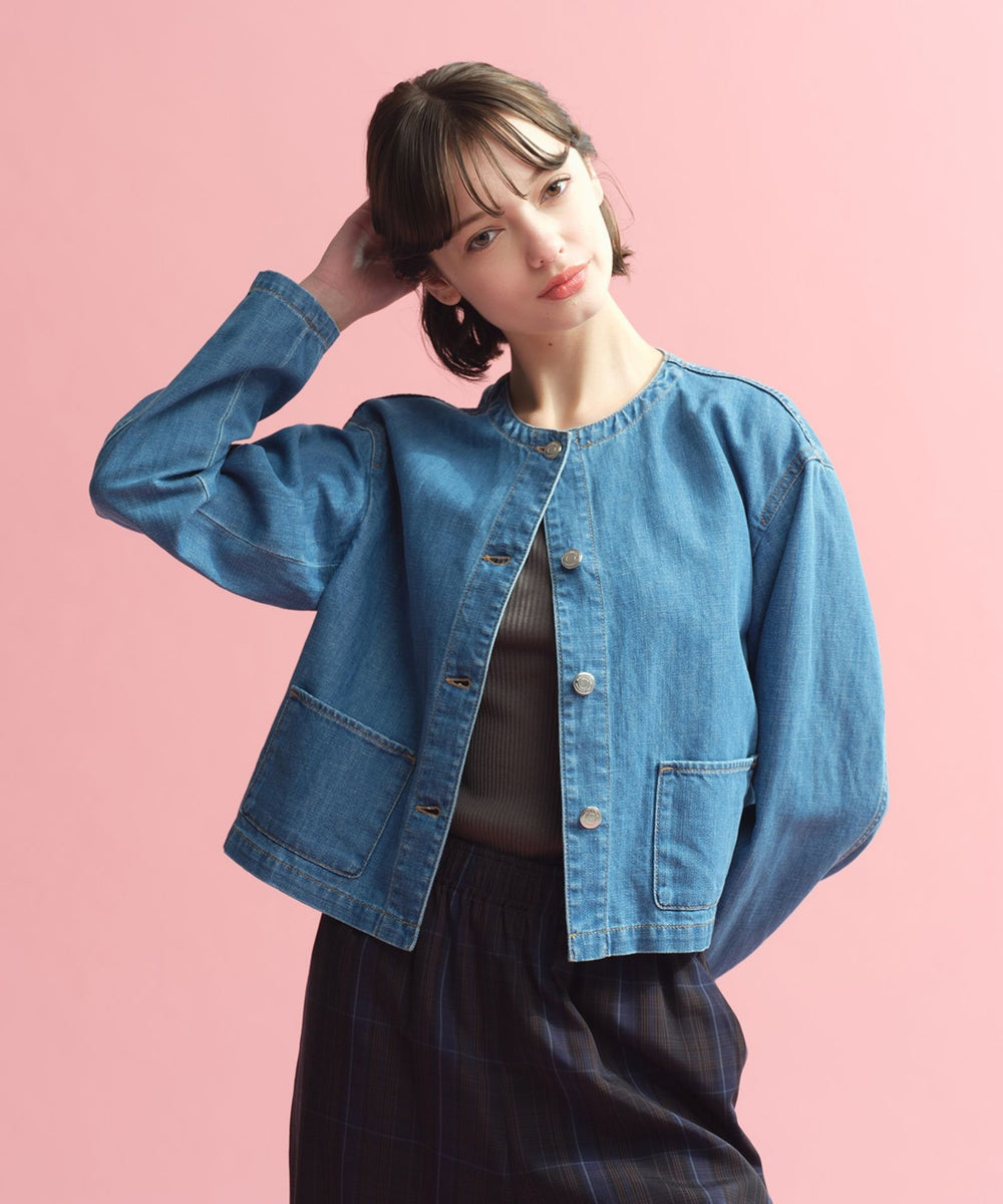 <人気のノーカラージャケットがデニム素材で登場>