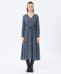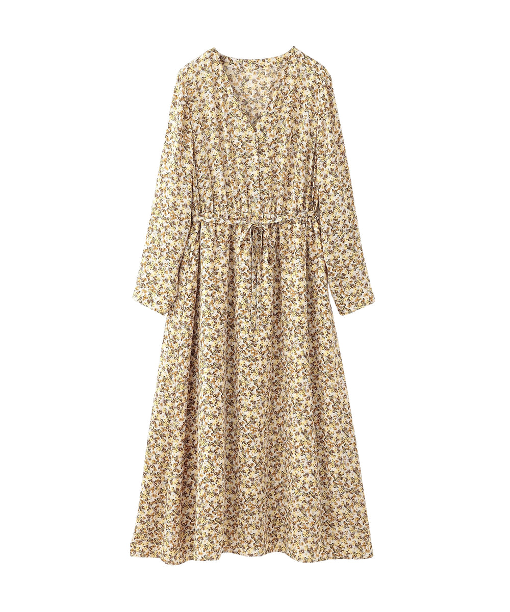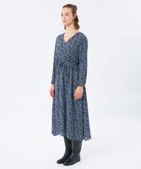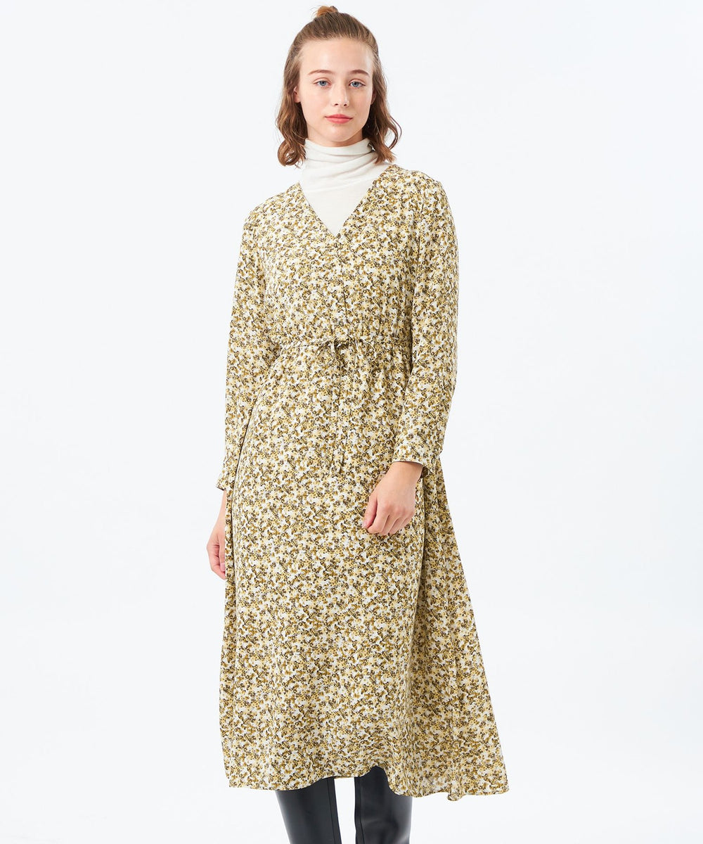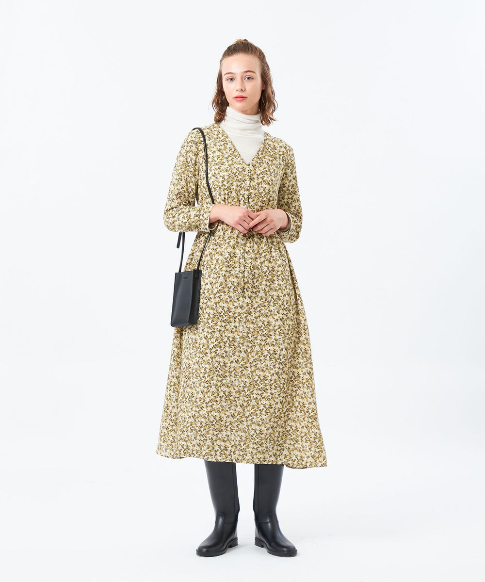 襟元のVネックラインがすっきりした印象のエレガントなワンピース。