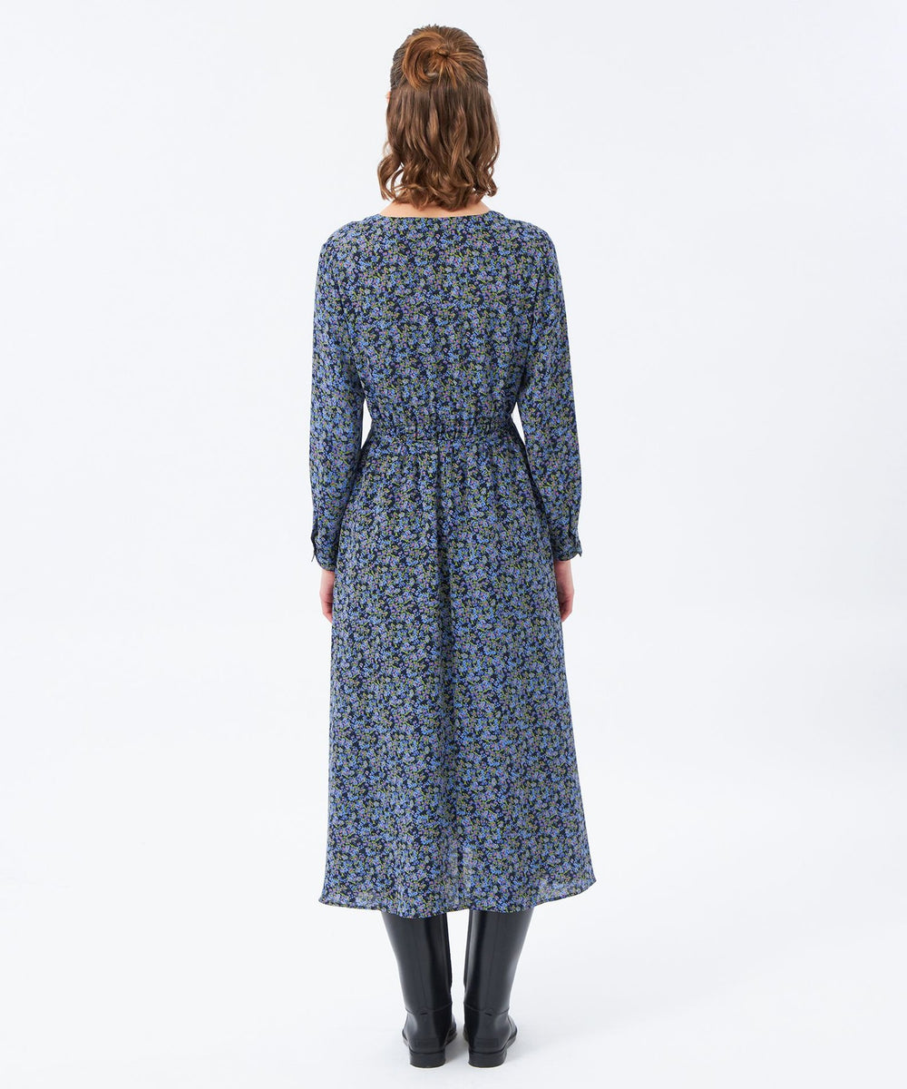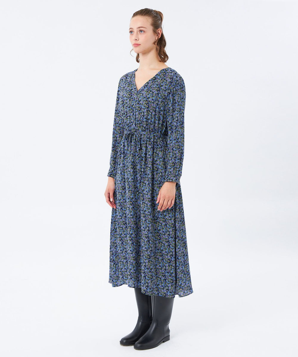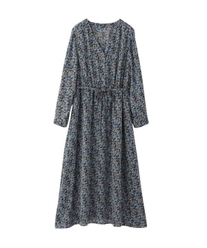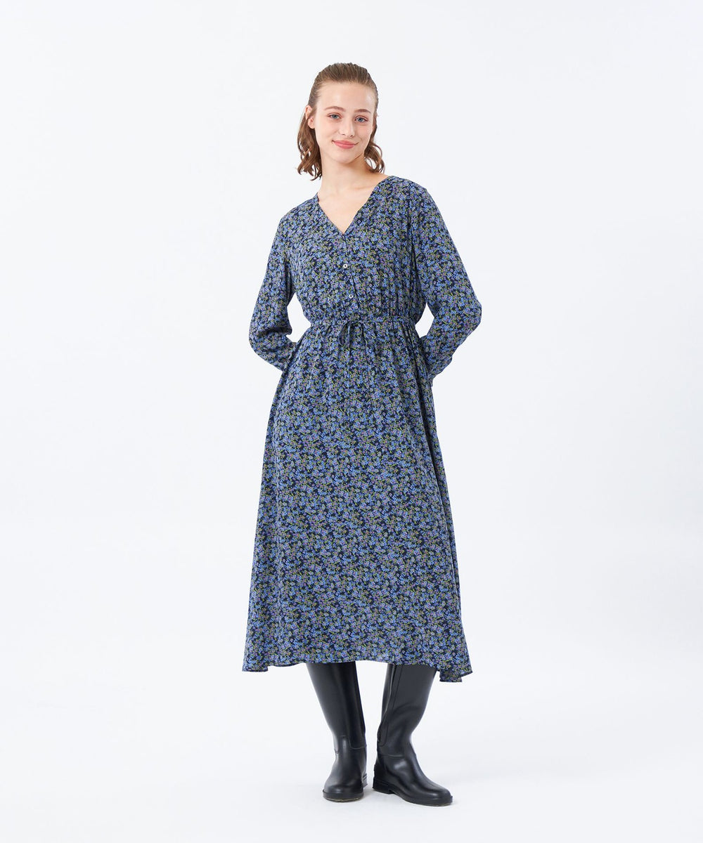 襟元のVネックラインがすっきりした印象のエレガントなワンピース。