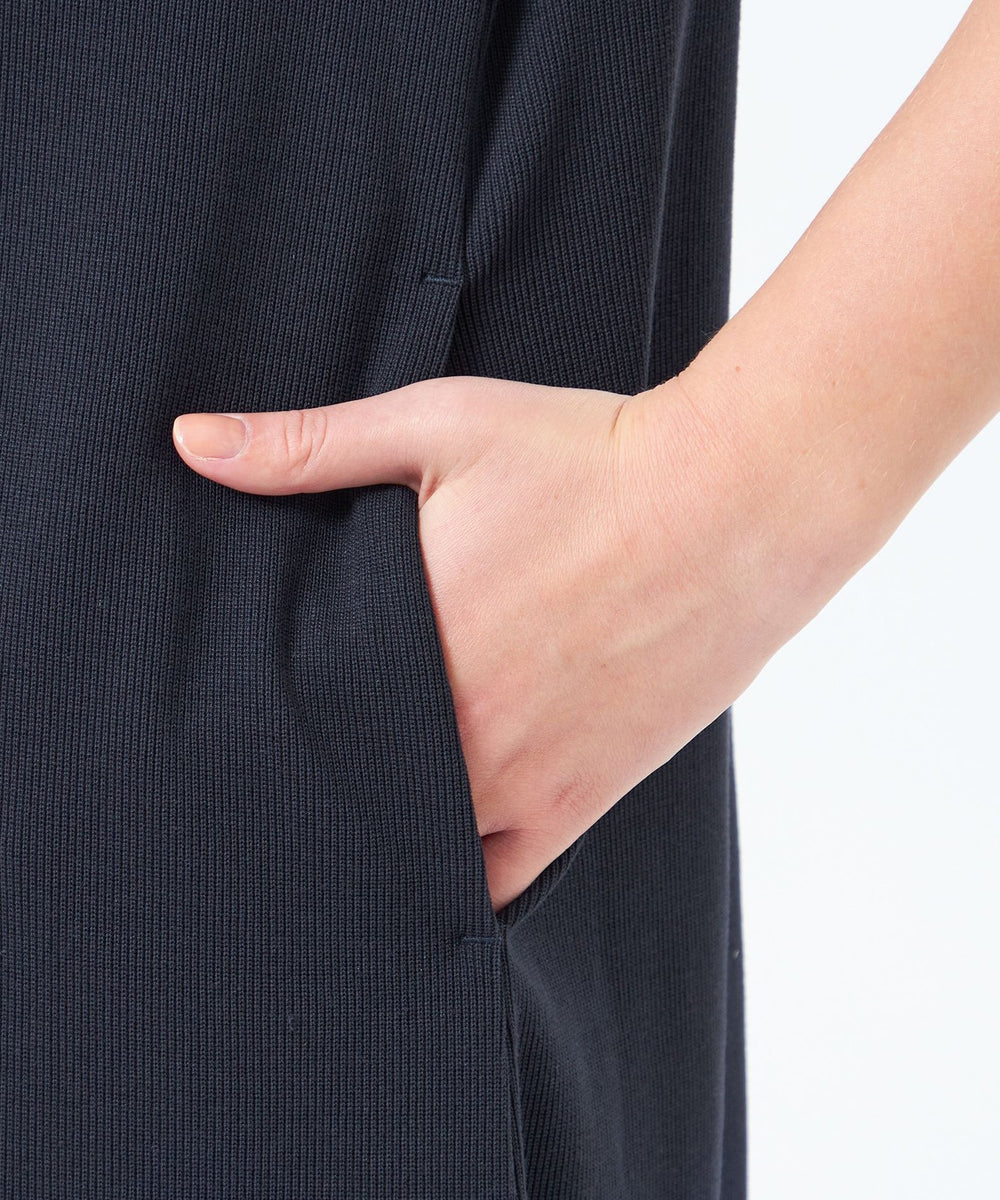 表面感のある素材を使用することで程よく厚みとハリが出て、張り付き感のないストレートなサックラインを実現。