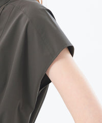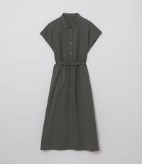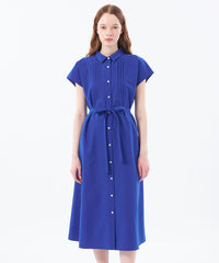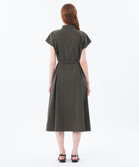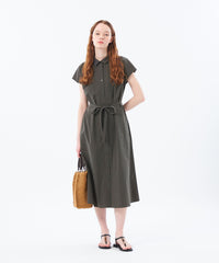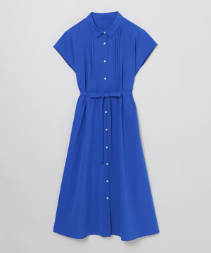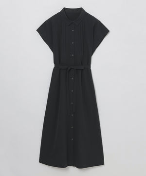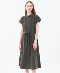 フロントのタックのブザムディテールがワンポイントになったフレンチスリーブシャツドレス。