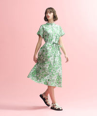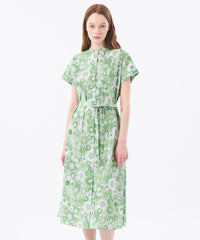 英国リバティ社のフラワー柄を使用した、華やかなバンドカラーシャツドレス。