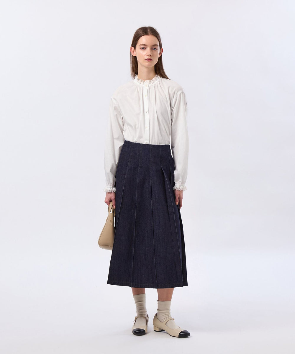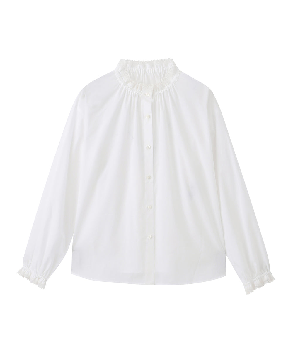 一枚着でも華やかな印象のレースコンビブラウス。襟元から覗くレースがコーディネートのポイントになるレイヤードアイテムとして大活躍の一着です。