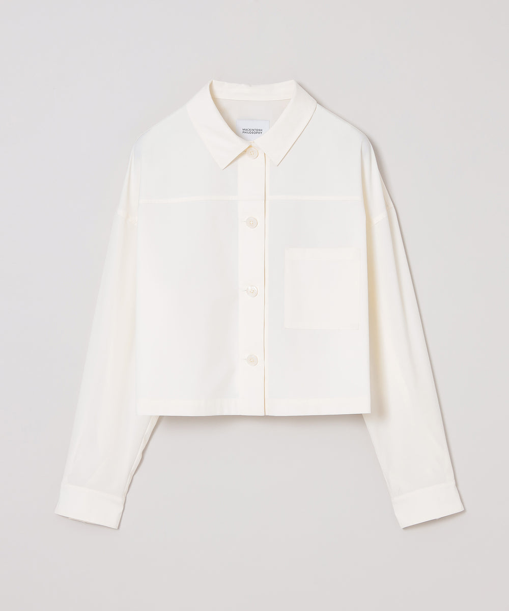 短め丈のシャツデザインは、羽織りとしても活躍間違いなし。トレンド感がありながらも、コーディネートに取り入れやすい一枚に。ボリュームのあるボトムスやワンピースともバランス良く決まります。