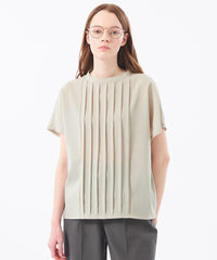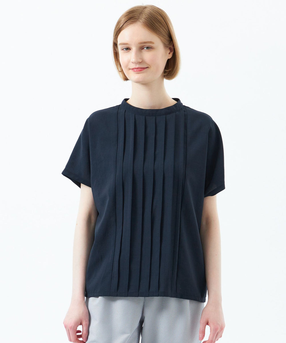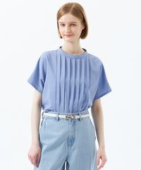 <フロントタックが華やかなフレンチスリーブブラウス>