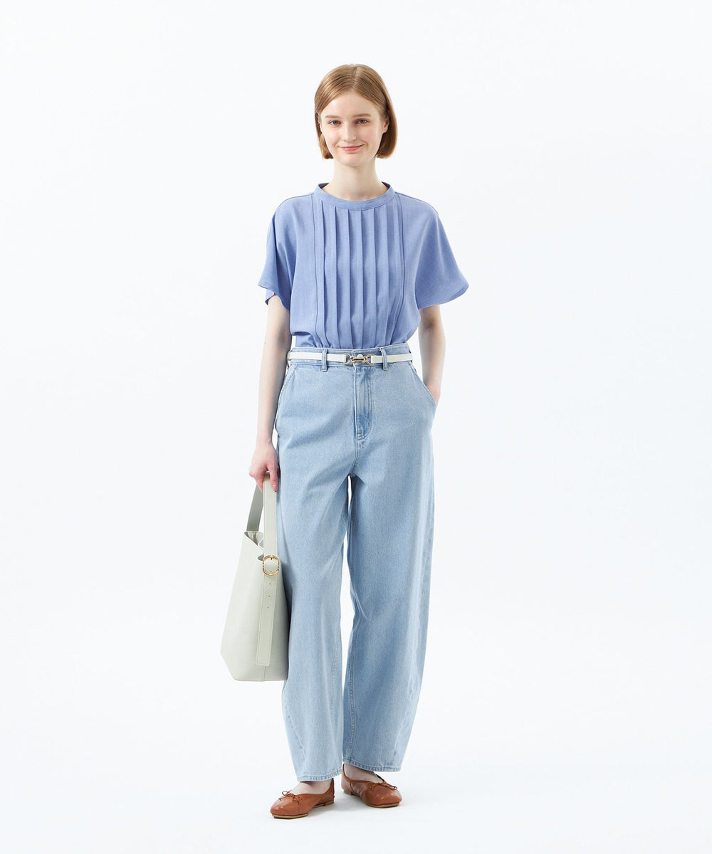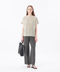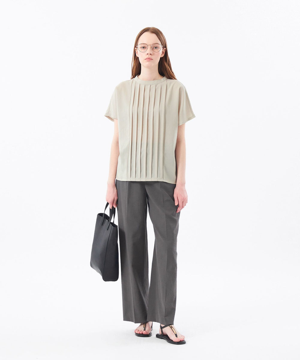 フラットな素材感ながら、タックディティールとナチュラルなメランジ調のカラーリングで、雰囲気のある一枚に。