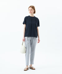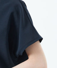 スラックスやスカートなどのキレイ目ボトムスに合わせたお仕事スタイルから、デニムパンツと合わせたカジュアルスタイルまで、着回し力は抜群です。フレンチスリーブなのでジャケットのインナーとしても、もたつかずスッキリと着用できます。