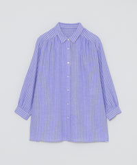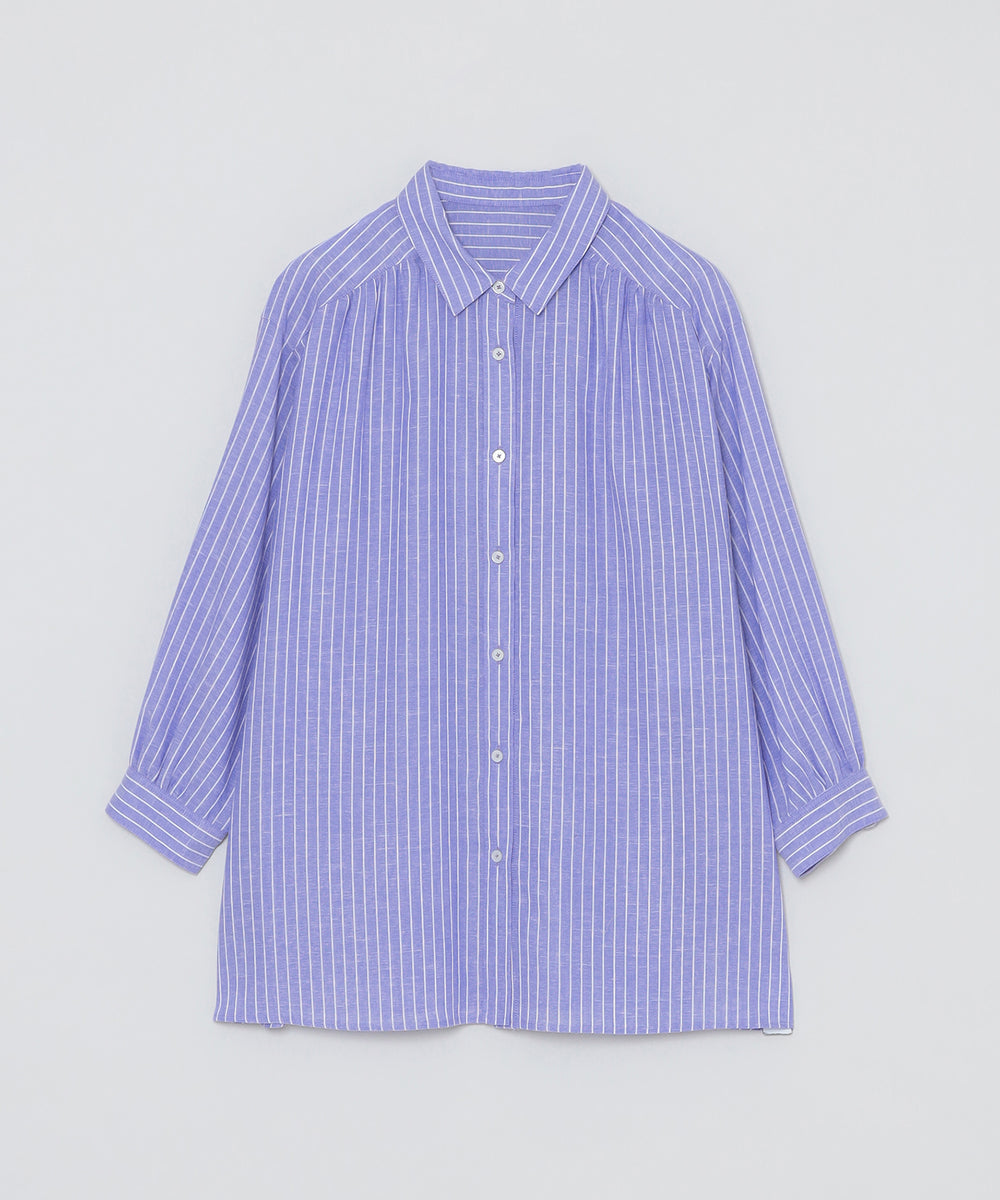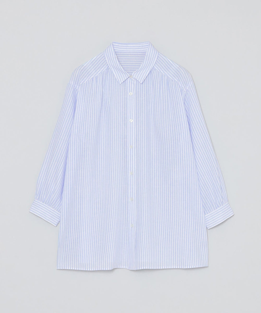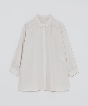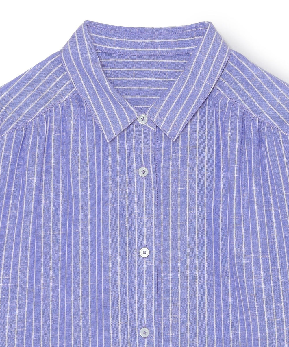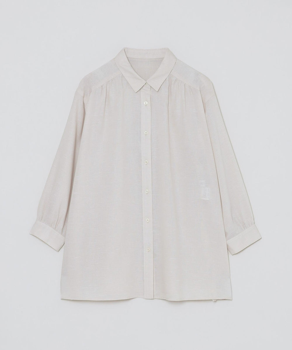<ギャザーをふんだんにあしらったリネン混シャツブラウス>
