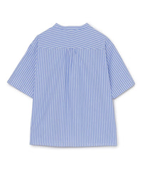 襟元の2個ボタンがデザインアクセント。ボックス型のフォルムも特徴的なサマーシャツです。