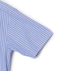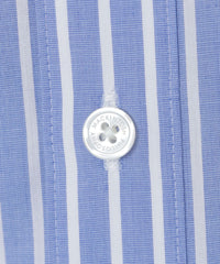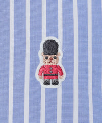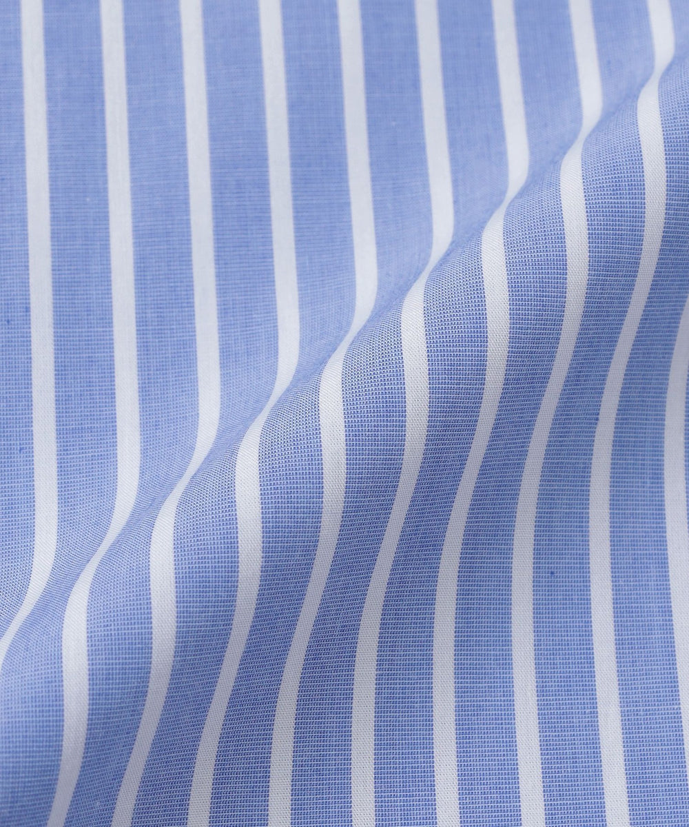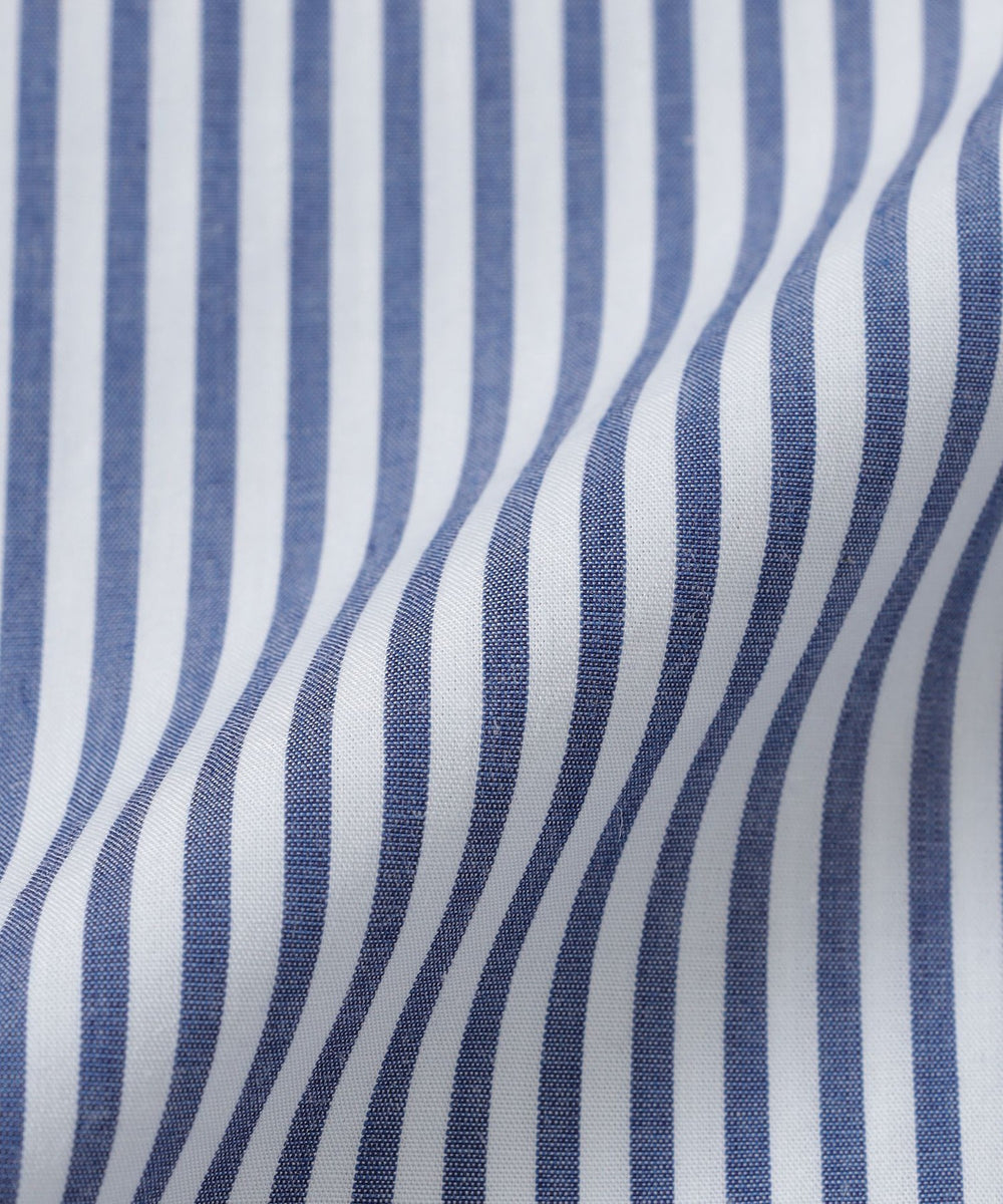 【素材】ナチュラルな風合いのコットンポプリンストライプ。バッキンガムベアのワッペンとも相性の良いブルーストライプ2色の展