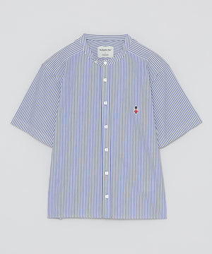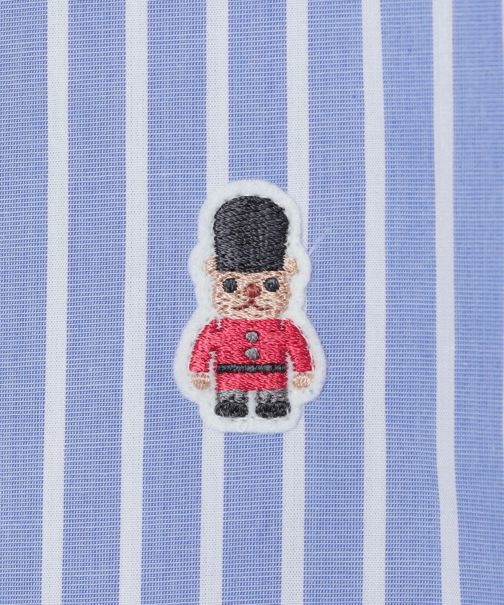 バッキンガムベアのワッペンがついた、半袖バンドカラーシャツ。