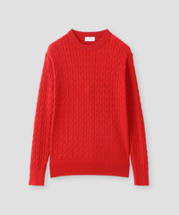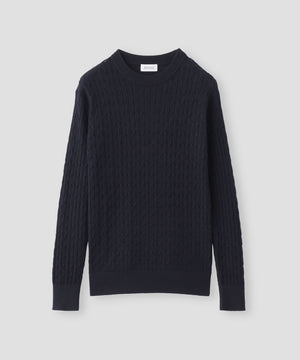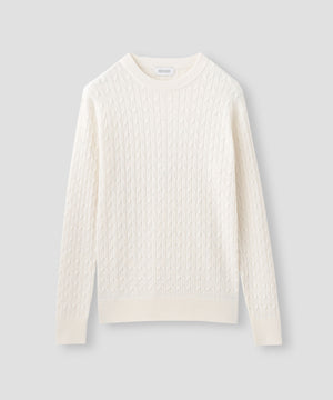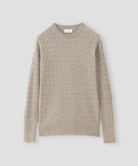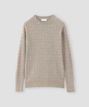 <暖かみのあるケーブル編みのニットプルオーバー>
