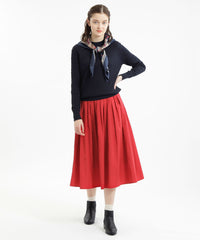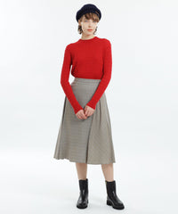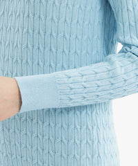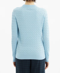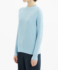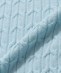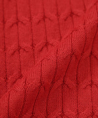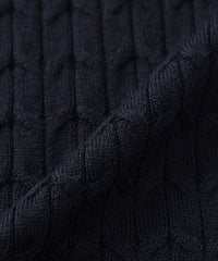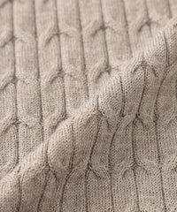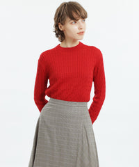 ケーブルのサイズ感と、着用した時の着丈バランスにこだわり、女性らしさとトラッドを両立させたニットに仕上げています。1枚での着用はもちろん、シャツやハイネックのカットソーとレイヤードして着用していただくのもおすすめです。