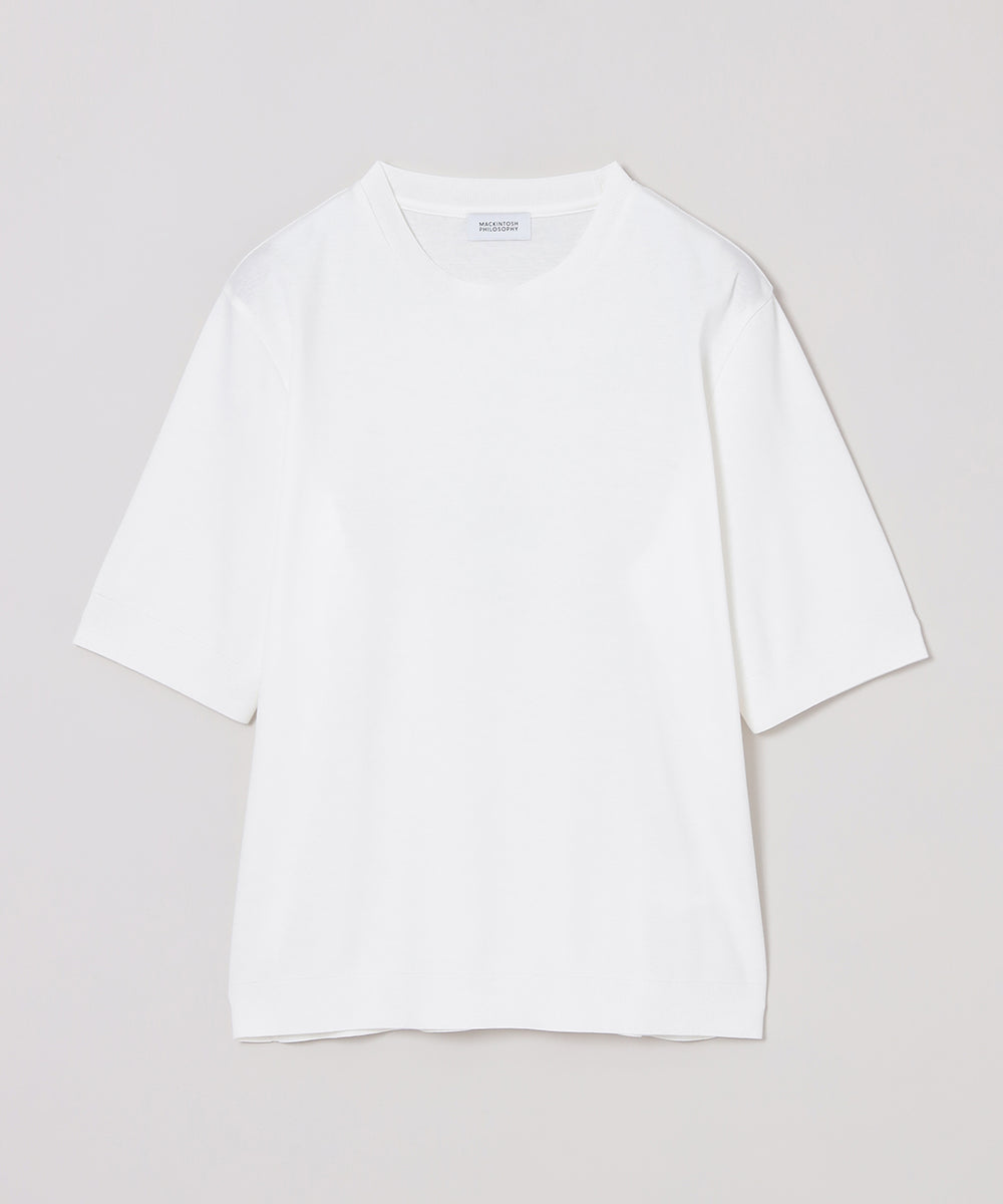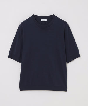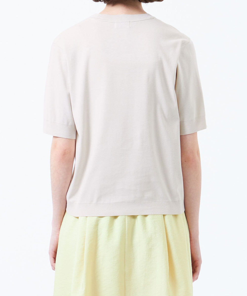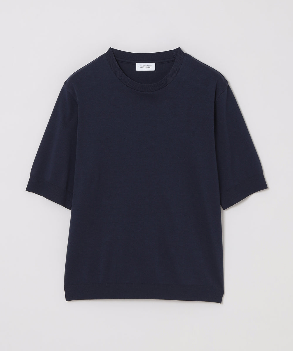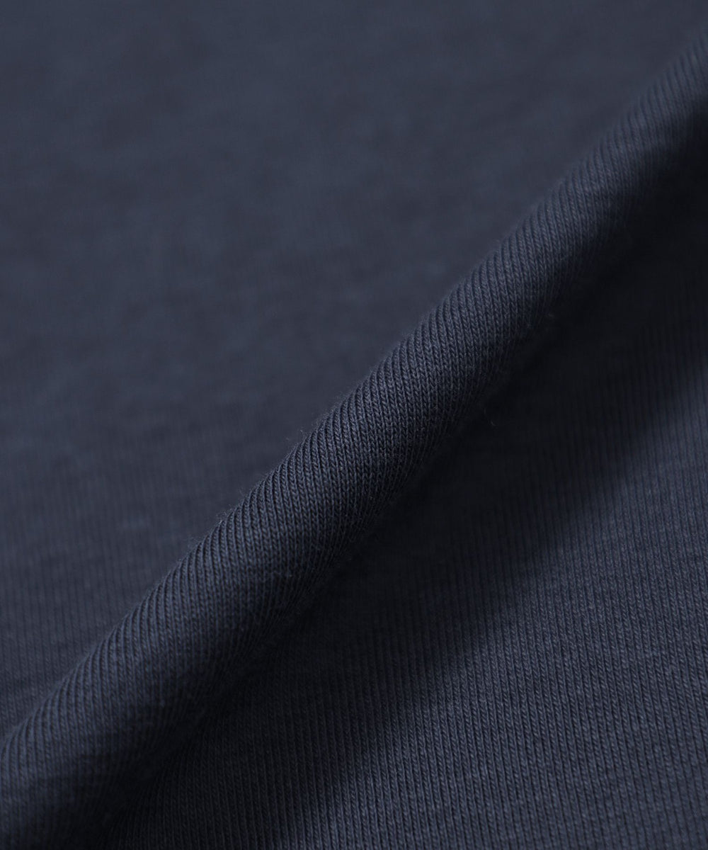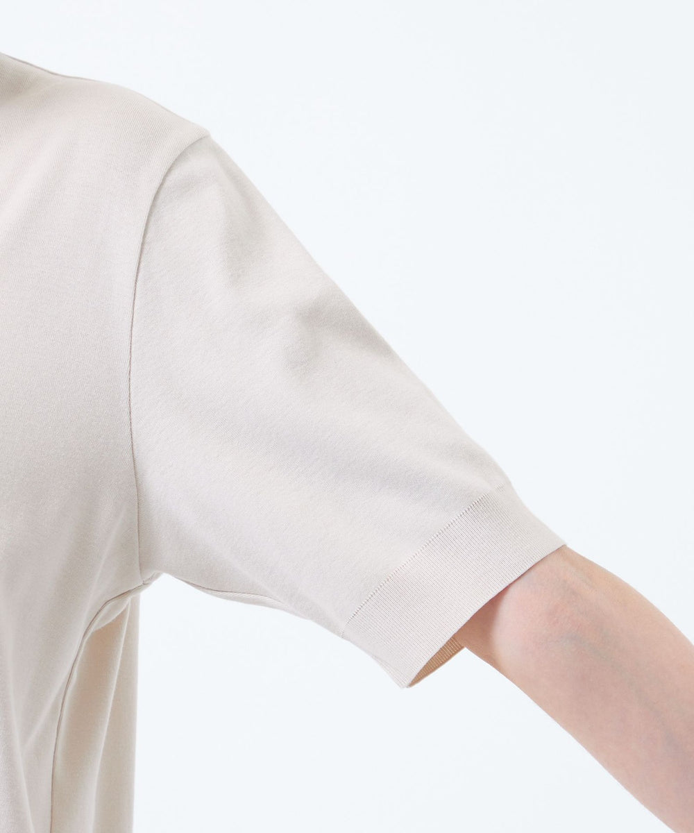 ハイゲージで毛羽の少ない糸を使用しているため、肌触りが良く程よい光沢感のある薄手素材。セーターマシーンという特殊な編み機を使用することで、継ぎ目も無くフラットな仕上がりになります。