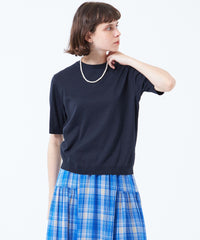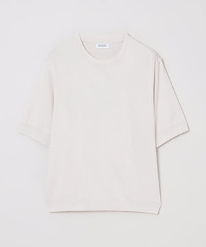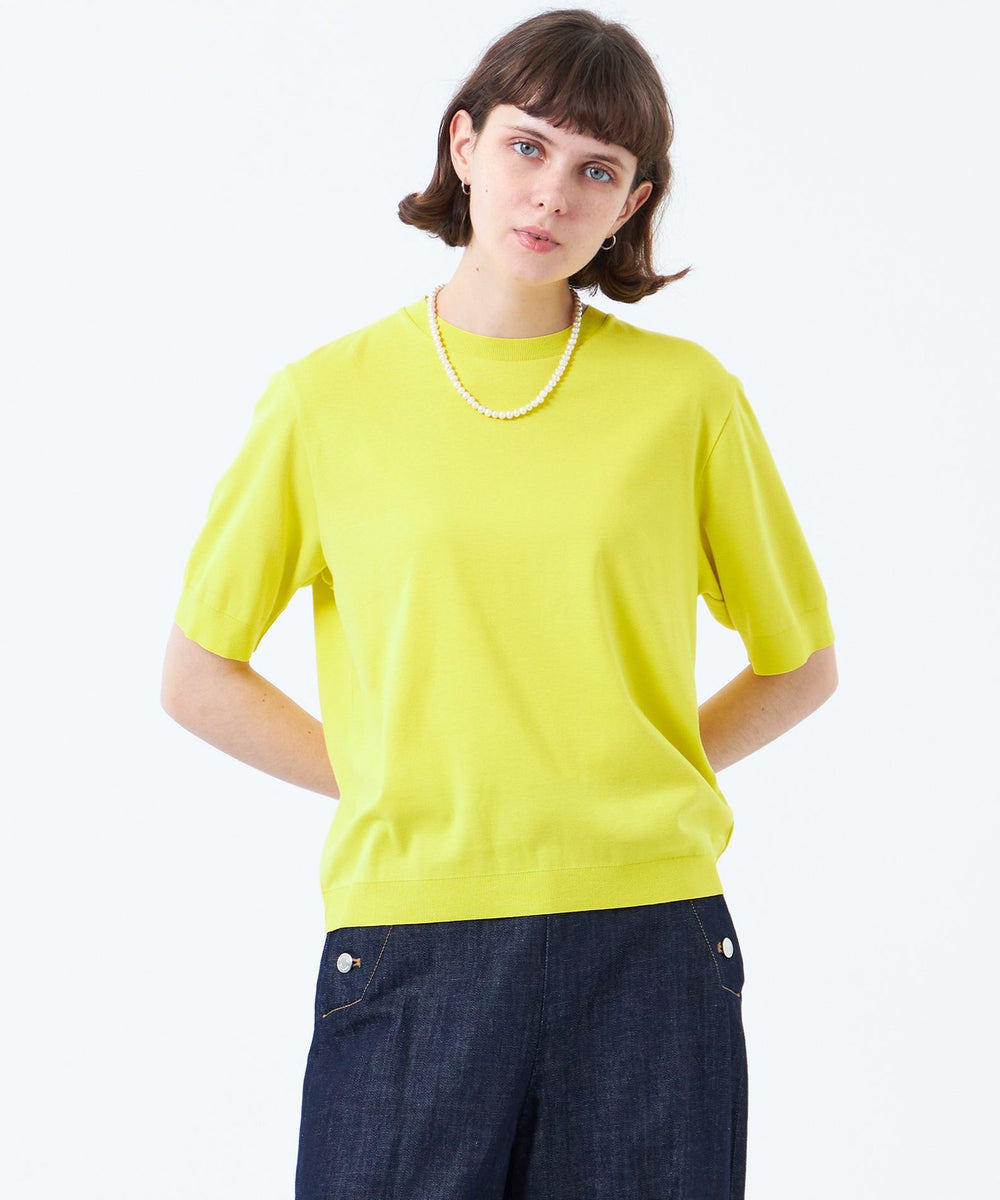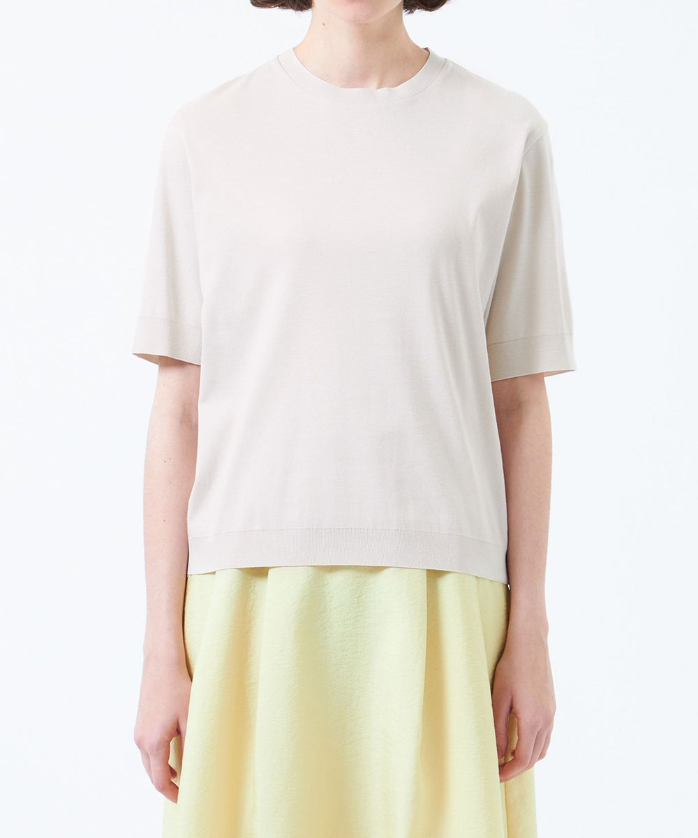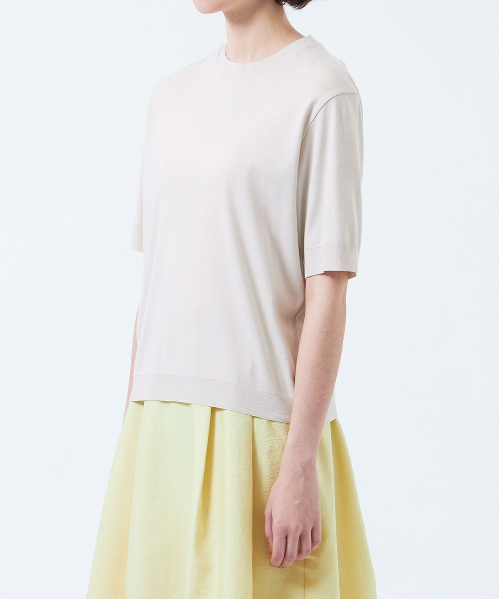 ニットの上品さとカットソーの軽快さを兼ね備えたクルーネックプルオーバー。